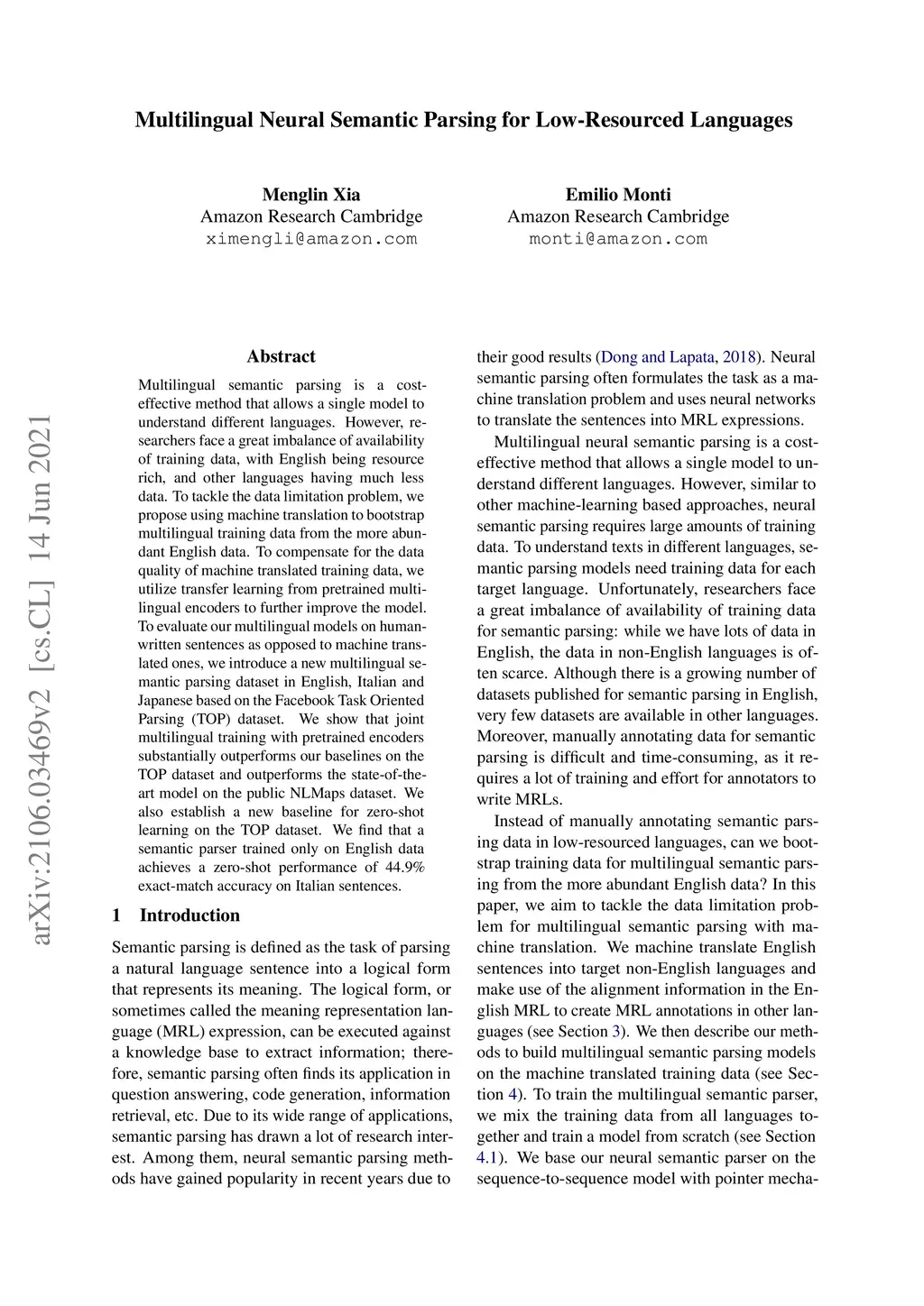 Multilingual Neural Semantic Parsing for Low-Resourced Languages