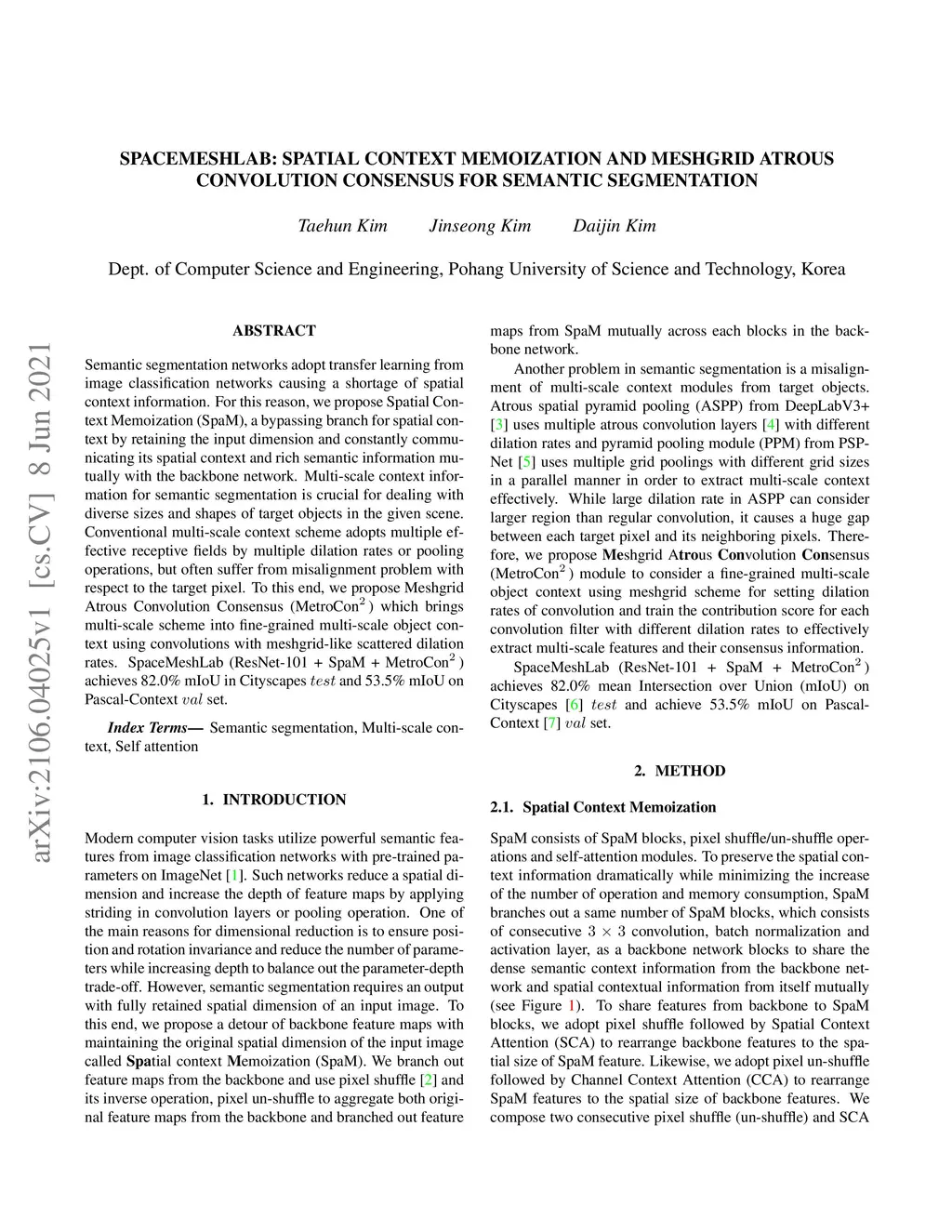 SpaceMeshLab: Spatial Context Memoization and Meshgrid Atrous
