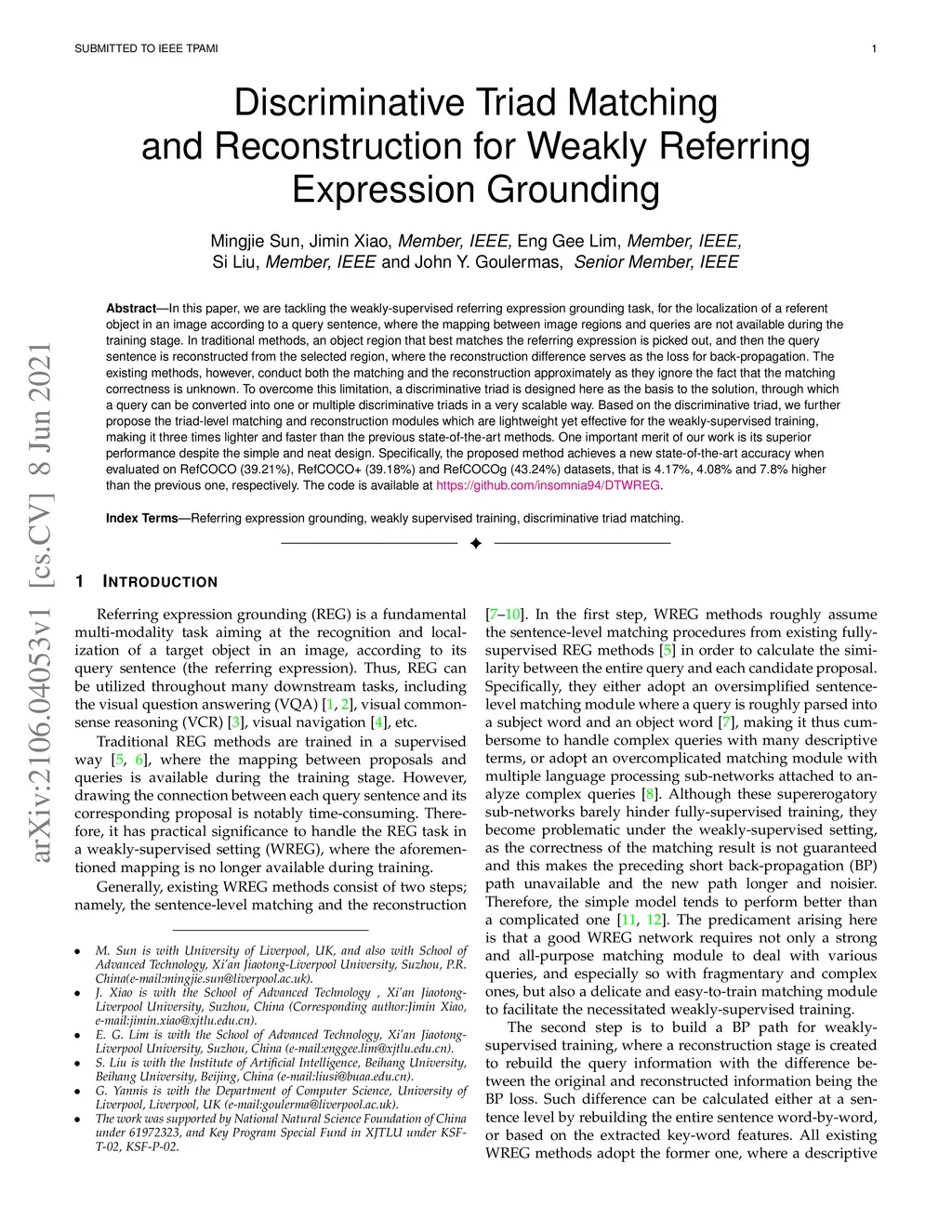 Discriminative Triad Matching and Reconstruction for Weakly Referring