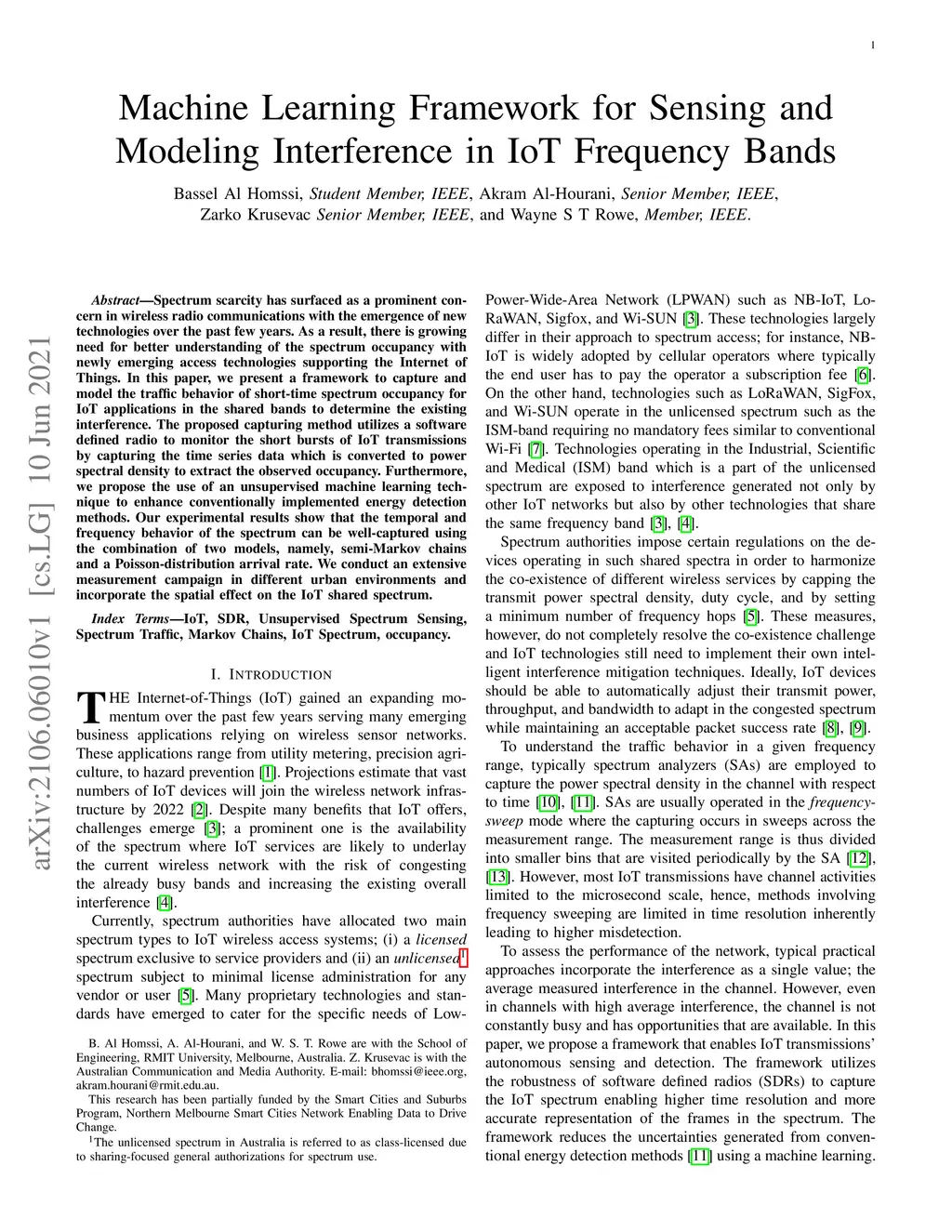 Machine Learning Framework for Sensing and Modeling Interference in IoT