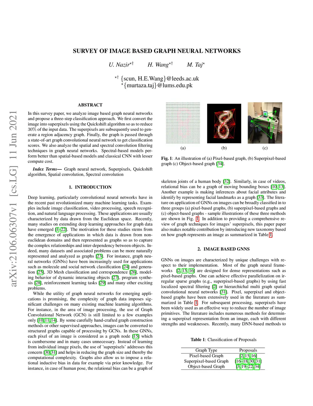 In this survey paper, we analyze image based graph neural networks and propose a three-step classification approach. We first convert the image into superpixels using the Quickshift algorithm so as to reduce 30% of the input data. The superpixels are subsequently used to generate a region adjacency graph. Finally, the graph is passed through a state-of-art graph convolutional neural network to get classification scores. We also analyze the spatial and spectral convolution filtering techniques in graph neural networks. Spectral-based models perform better than spatial-based models and classical CNN with lesser compute cost.