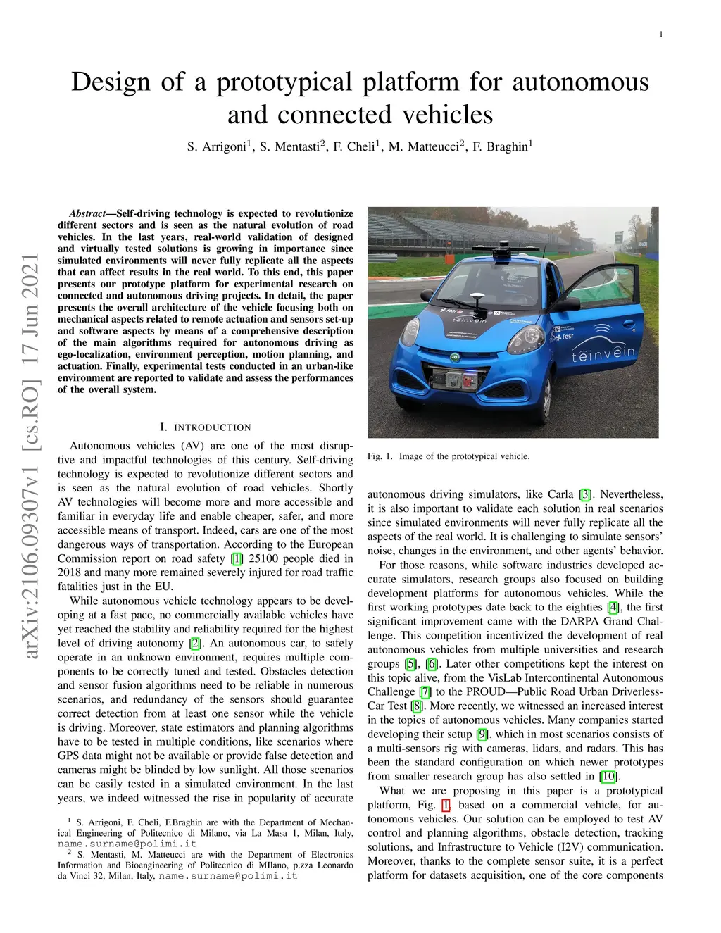 Design of a prototypical platform for autonomous and connected vehicles