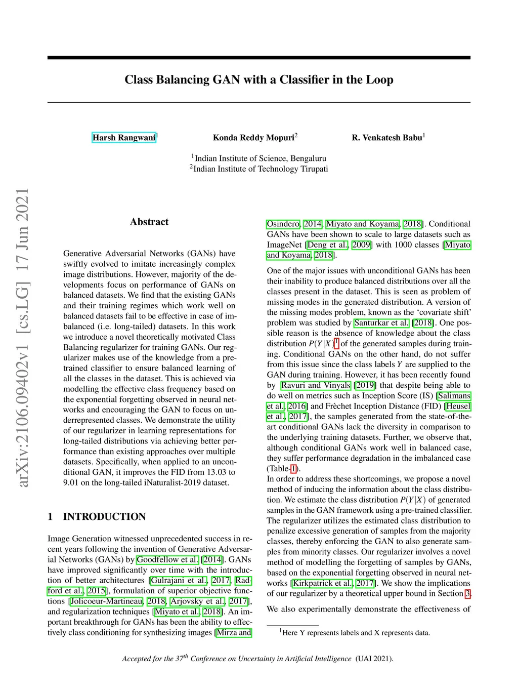 Generative Adversarial Networks (GANs) have swiftly evolved to imitate increasingly complex image distributions. However, majority of the developments focus on performance of GANs on balanced datasets. We find that the existing GANs and their training regimes which work well on balanced datasets fail to be effective in case of imbalanced (i.e. long-tailed) datasets. In this work we introduce a novel theoretically motivated Class Balancing regularizer for training GANs. Our regularizer makes use of the knowledge from a pre-trained classifier to ensure balanced learning of all the classes in the dataset. This is achieved via modelling the effective class frequency based on the exponential forgetting observed in neural networks and encouraging the GAN to focus on underrepresented classes. We demonstrate the utility of our regularizer in learning representations for long-tailed distributions via achieving better performance than existing approaches over multiple datasets. Specifically, when applied to an unconditional GAN, it improves the FID from to on the long-tailed iNaturalist- dataset.