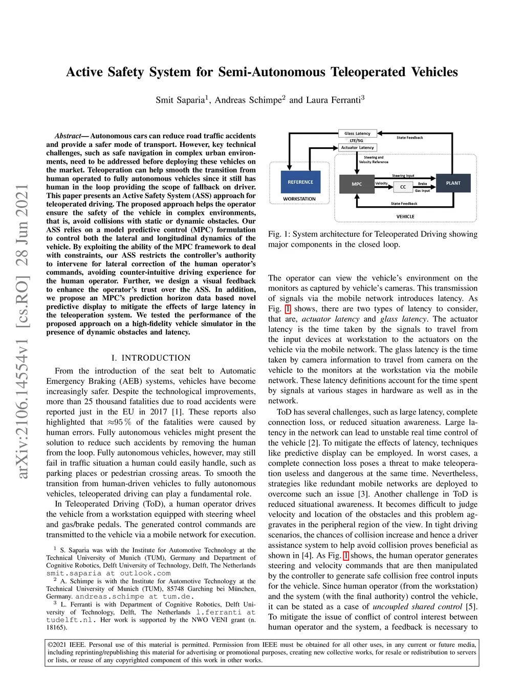 Active Safety System for Semi-Autonomous Teleoperated Vehicles
