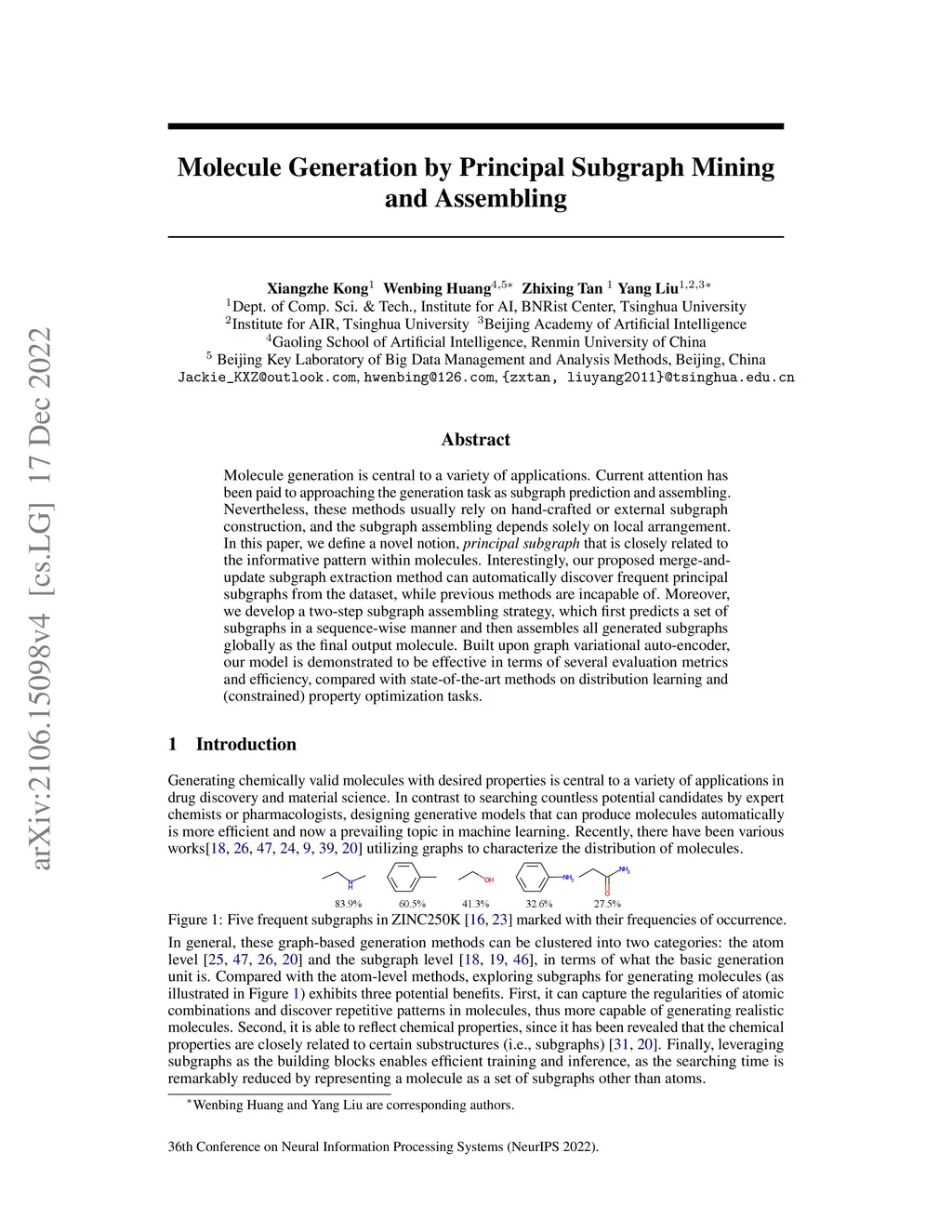 Molecule Generation by Principal Subgraph Mining and Assembling
