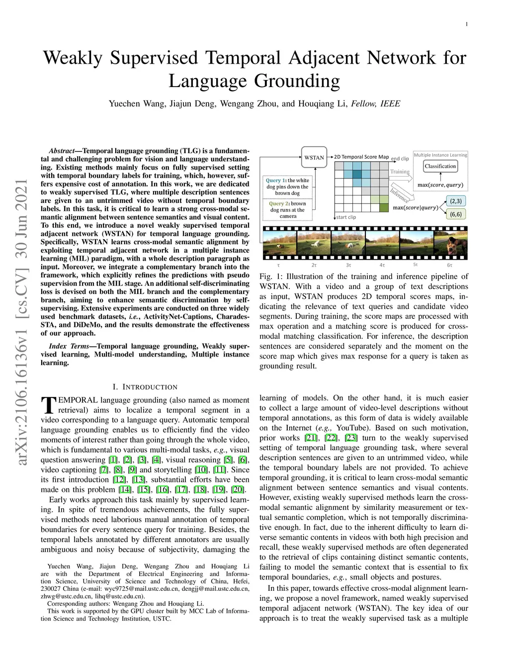 Weakly Supervised Temporal Adjacent Network for Language Grounding