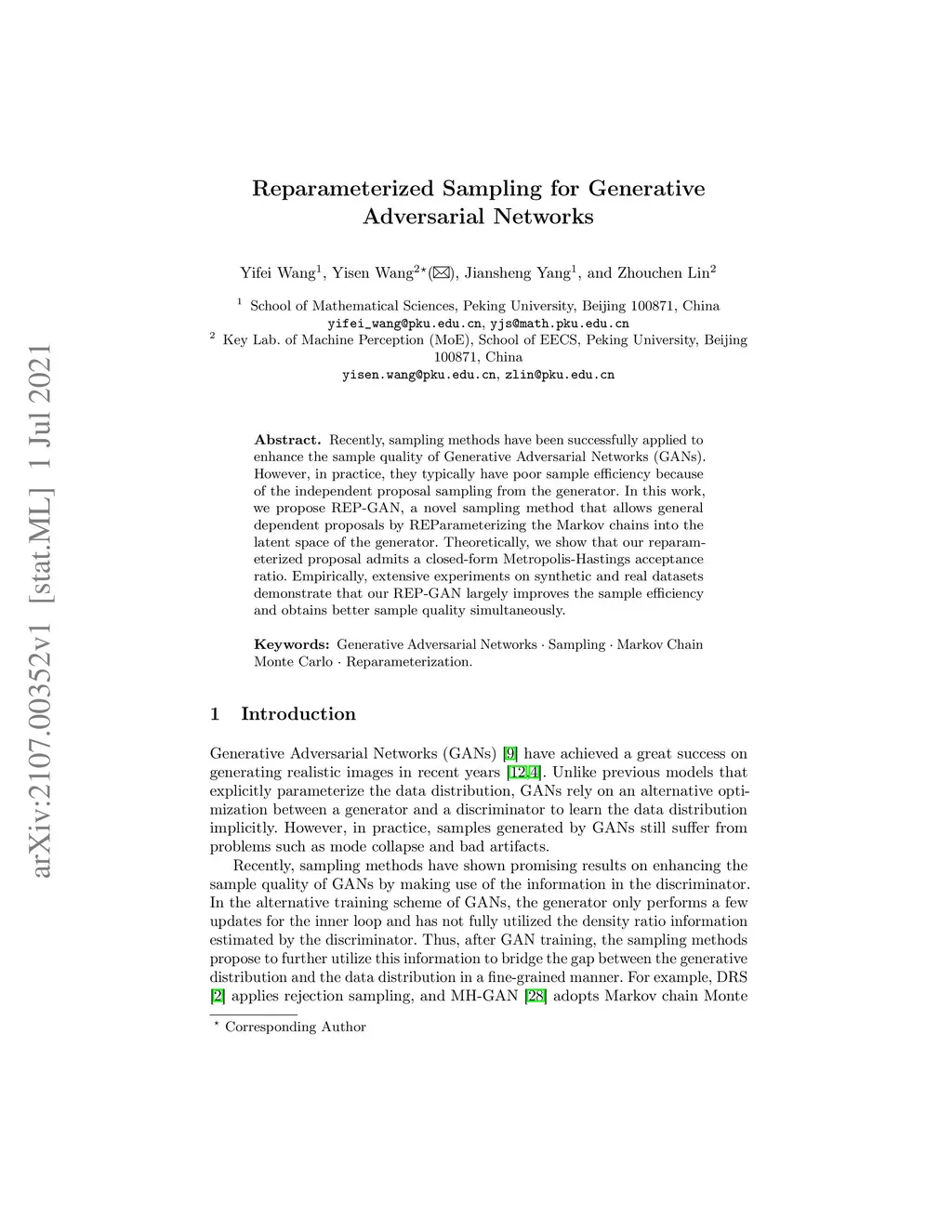 Reparameterized Sampling for Generative Adversarial Networks