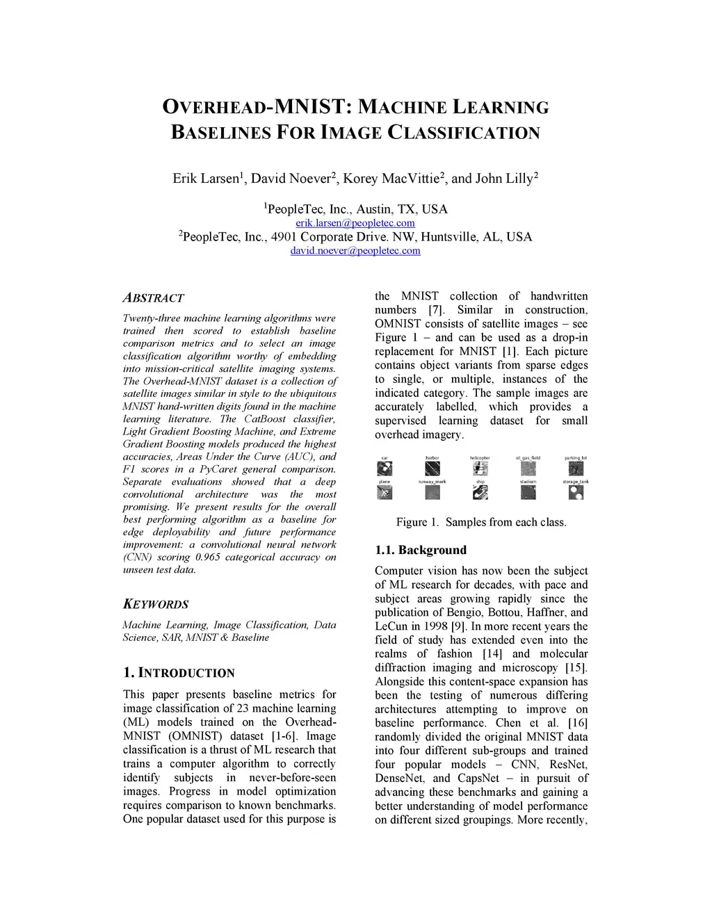 Overhead-MNIST: Machine Learning Baselines for Image Classification