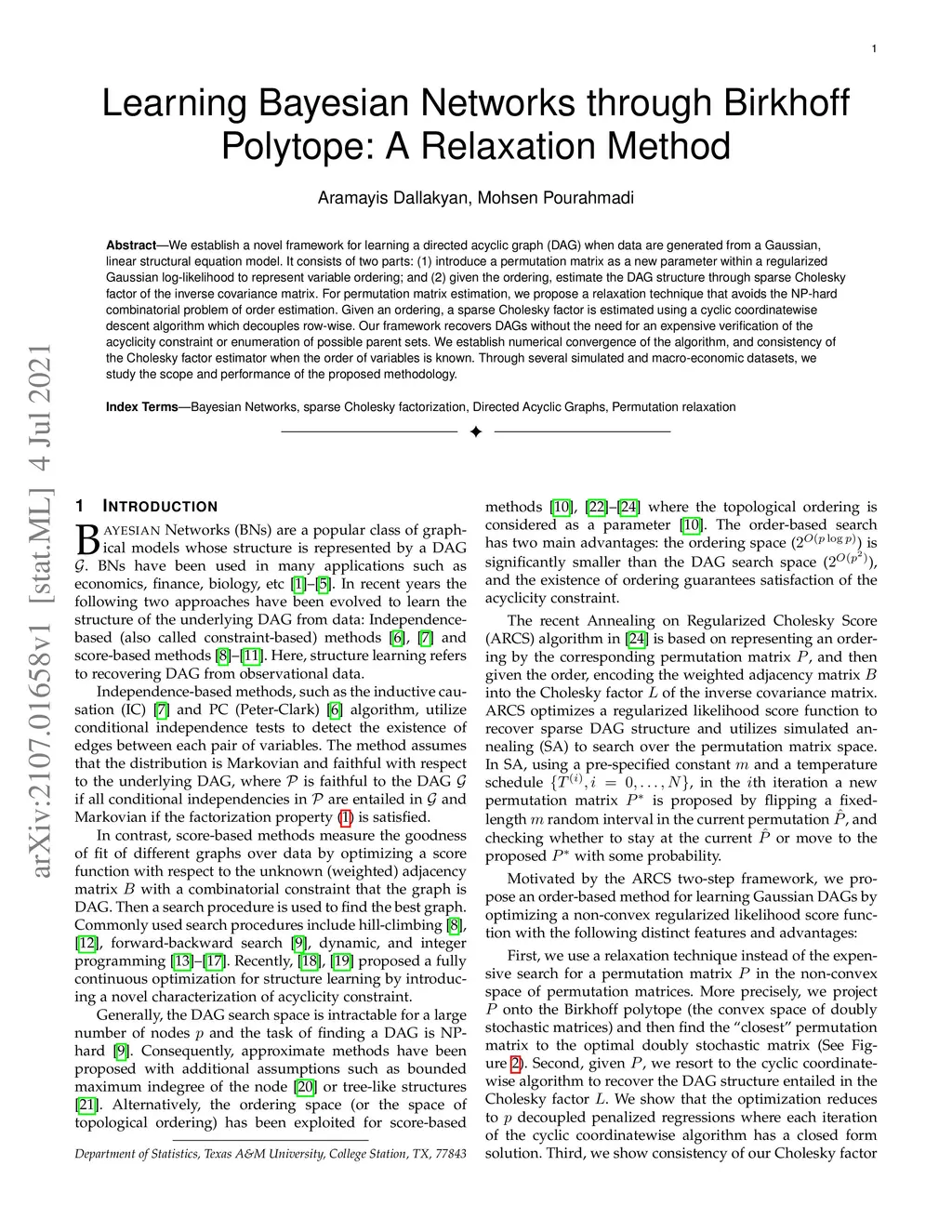 Learning Bayesian Networks through Birkhoff Polytope: A Relaxation