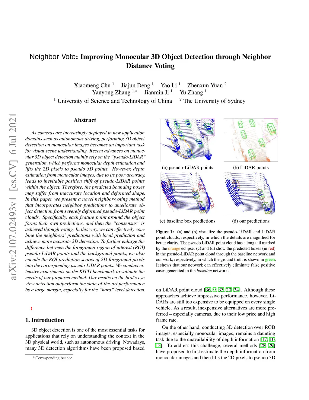 Neighbor-Vote: Improving Monocular 3D Object Detection through Neighbor