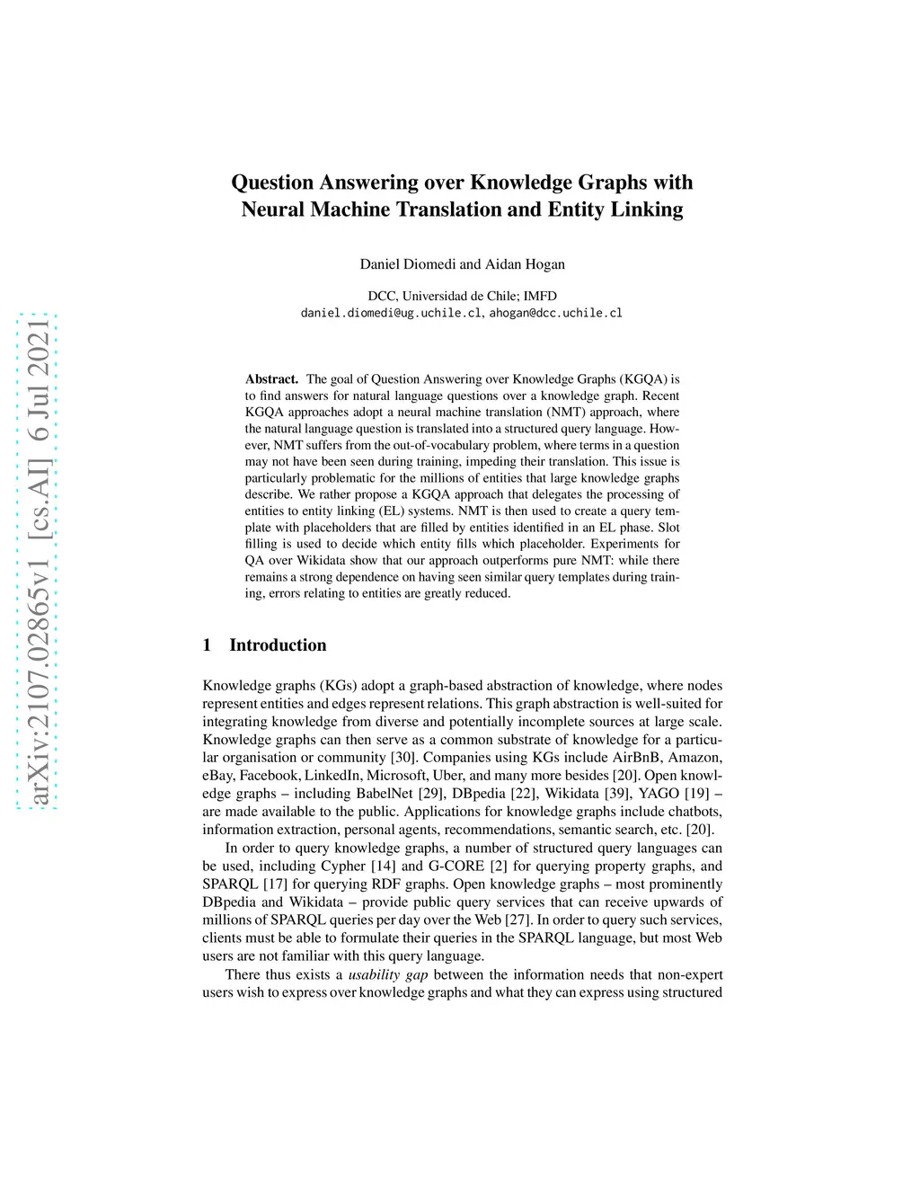 Question Answering over Knowledge Graphs with Neural Machine Translation