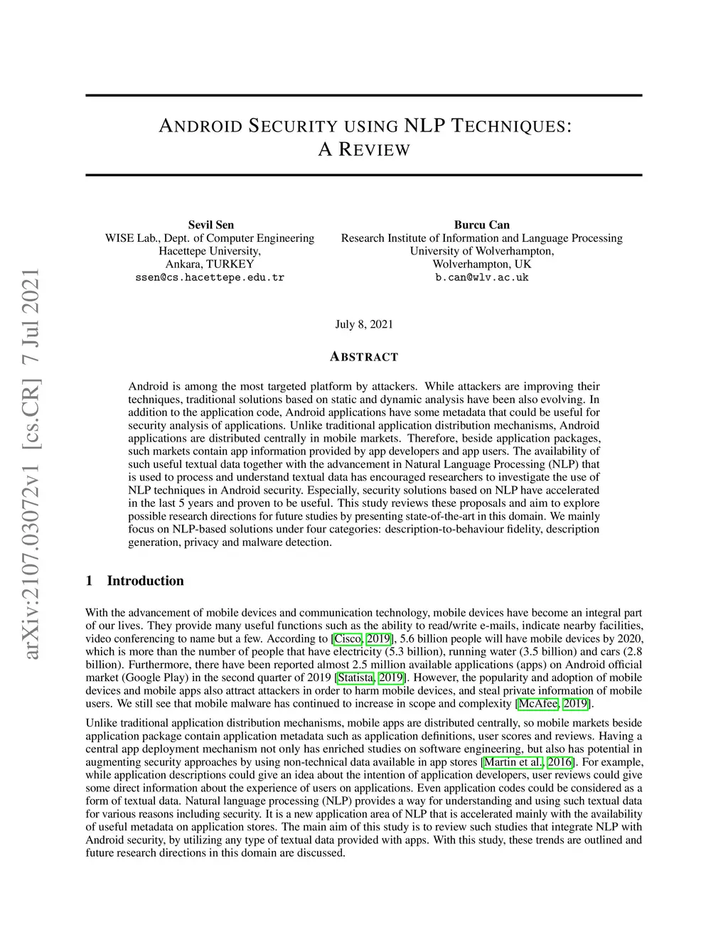 Android Security using NLP Techniques: A Review
