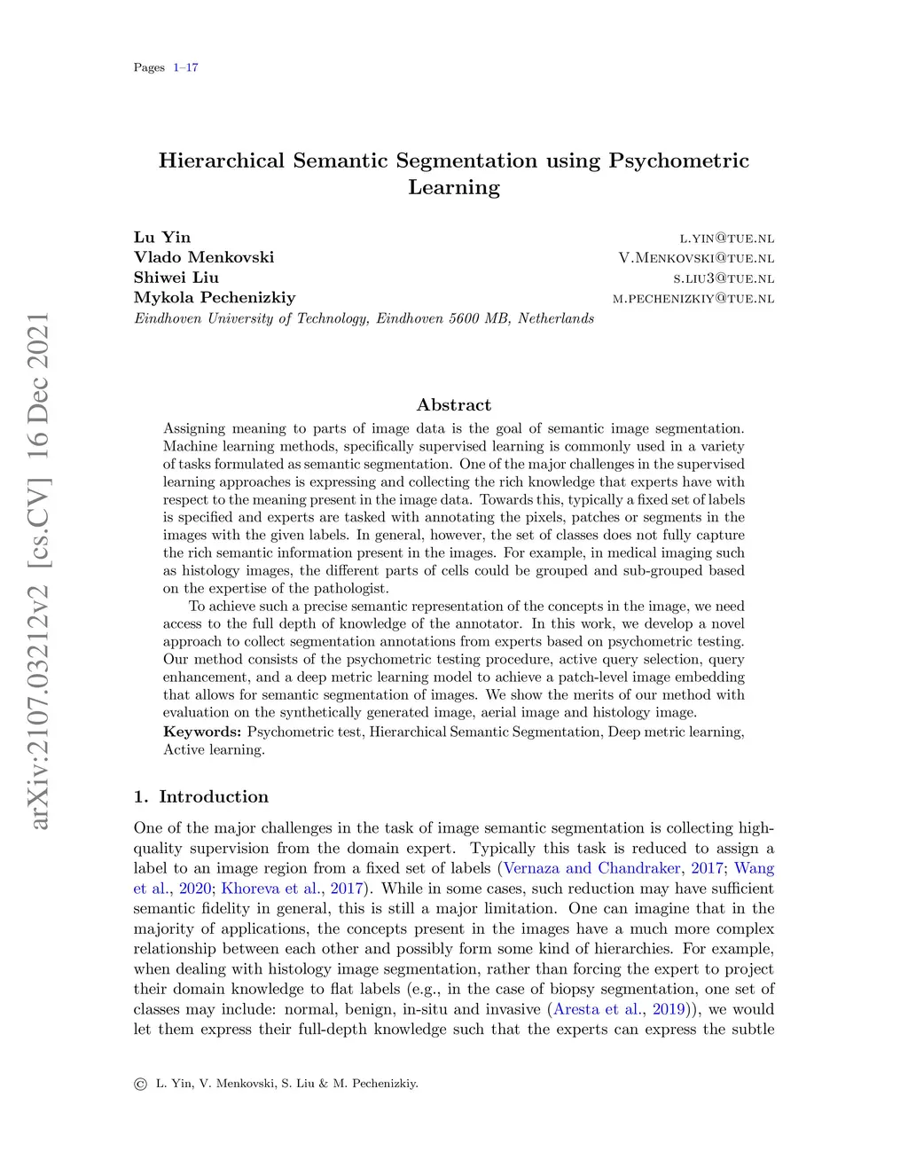 Hierarchical Semantic Segmentation using Psychometric Learning