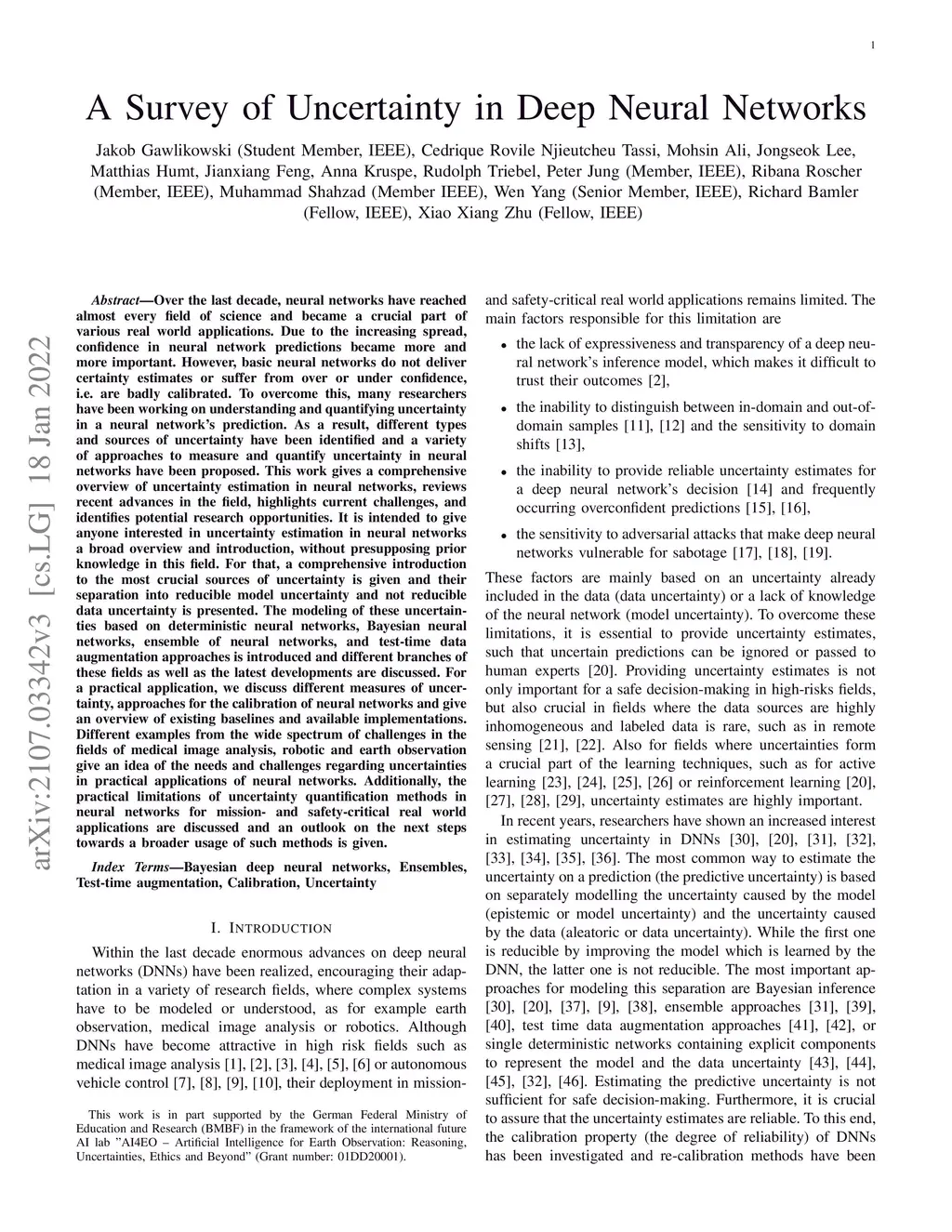A Survey of Uncertainty in Deep Neural Networks