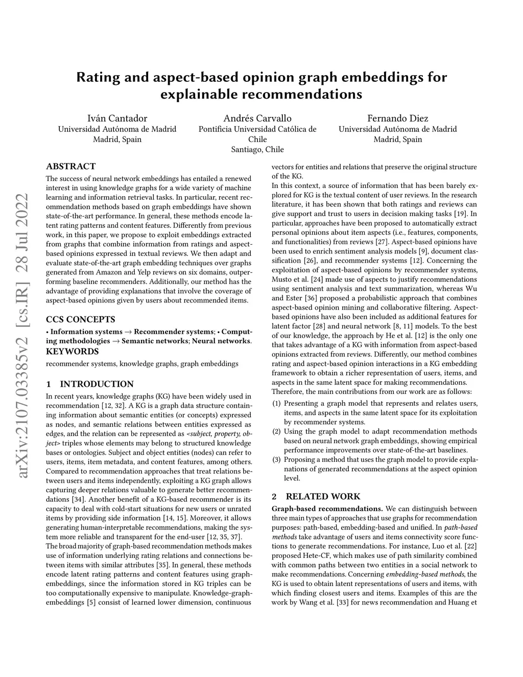 Rating and aspect-based opinion graph embeddings for explainable