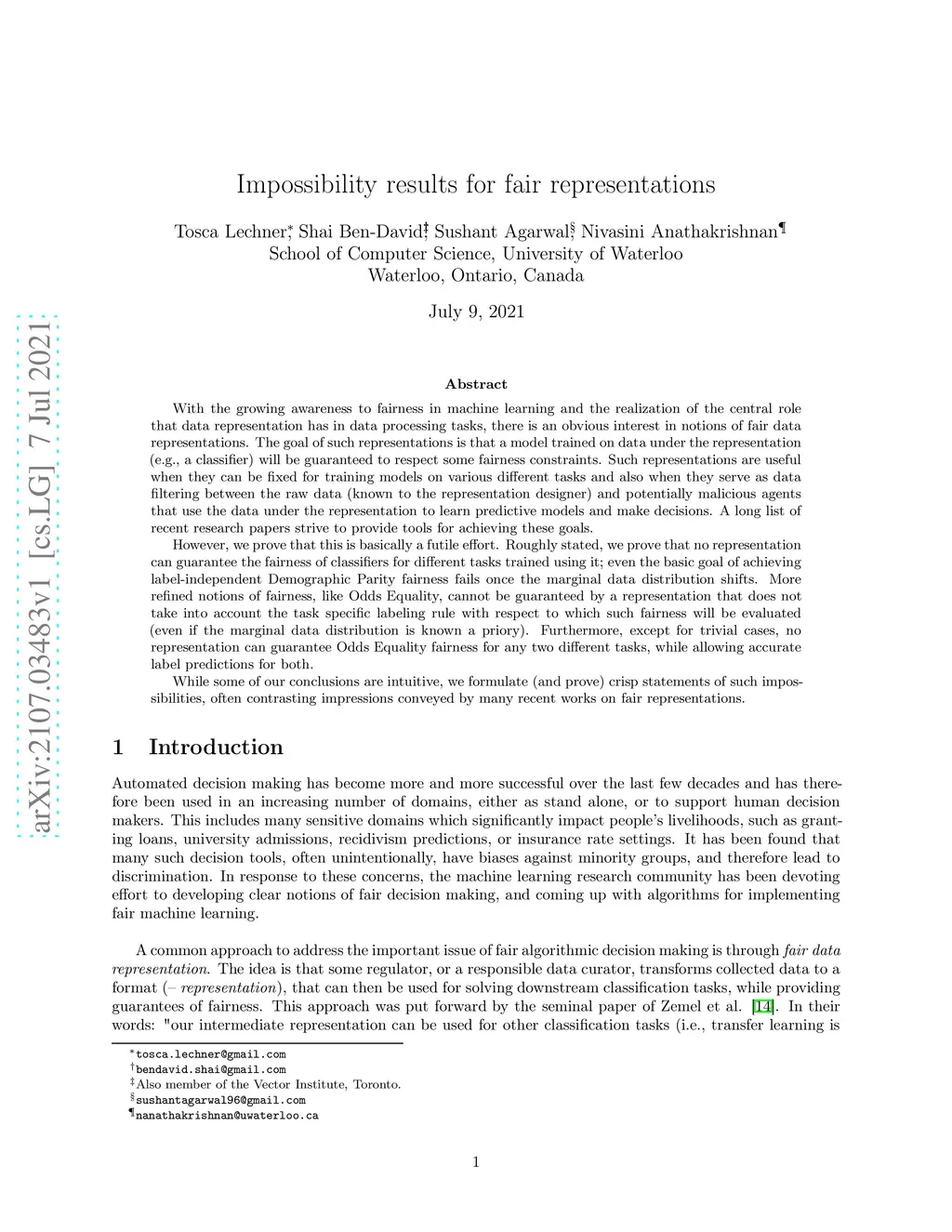 Impossibility results for fair representations