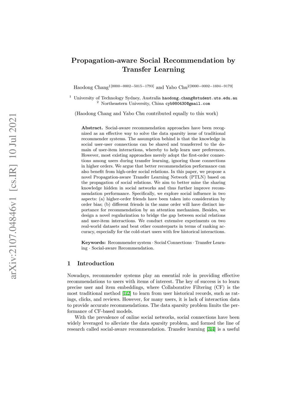 Propagation-aware Social Recommendation by Transfer Learning