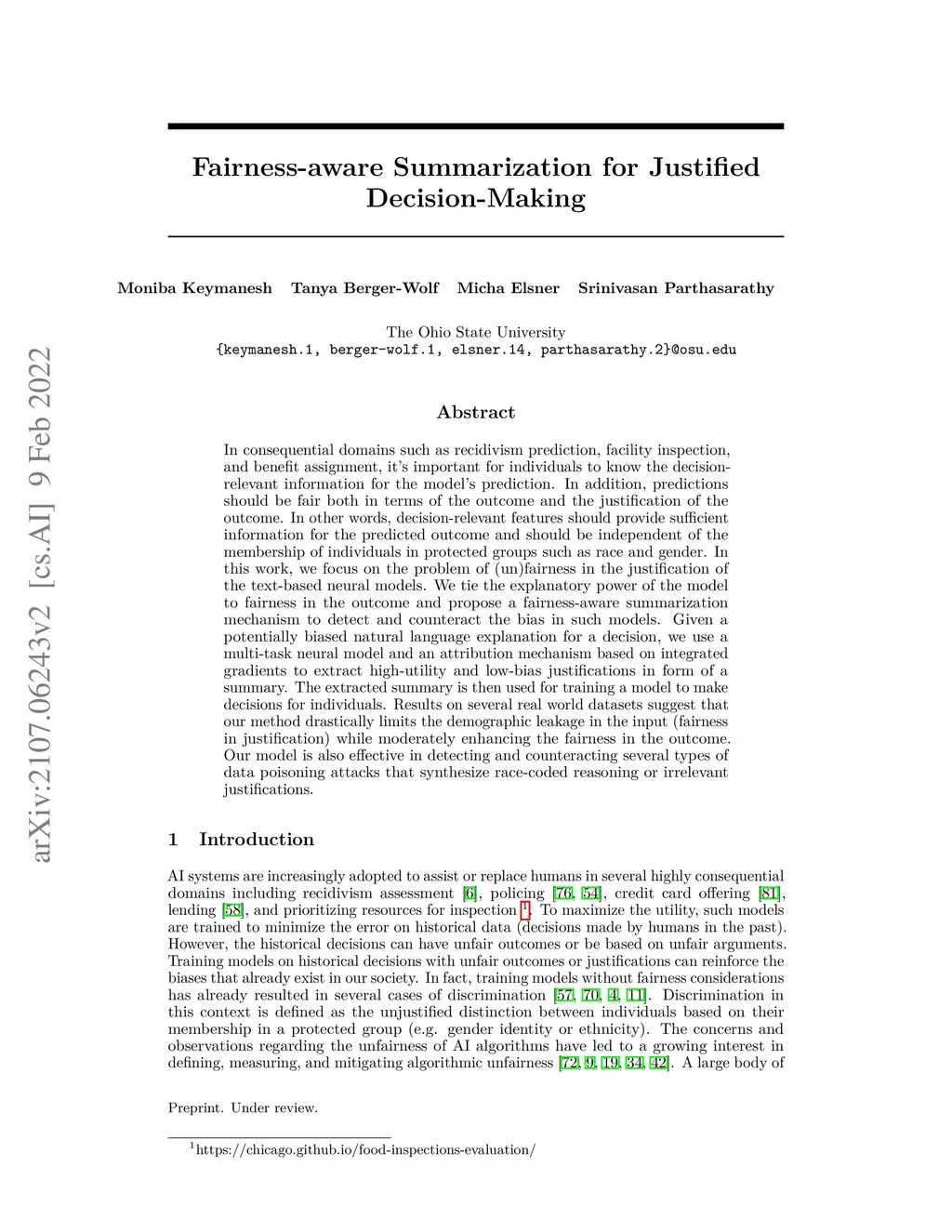 Fairness-aware Summarization for Justified Decision-Making