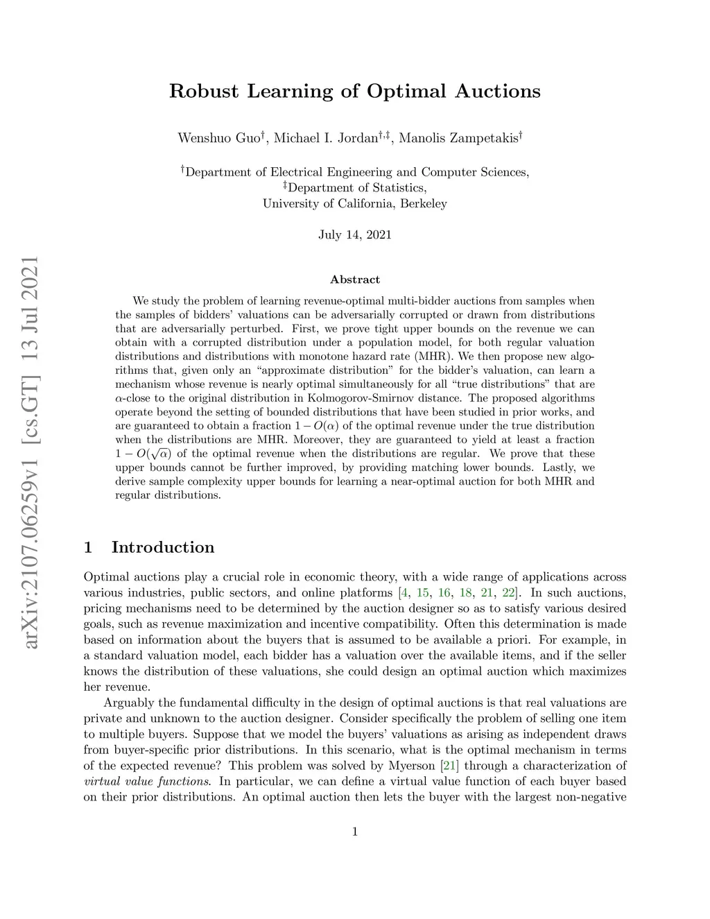 We study the problem of learning revenue-optimal multi-bidder auctions from samples when the samples of bidders' valuations can be adversarially corrupted or drawn from distributions that are adversarially perturbed. First, we prove tight upper bounds on the revenue we can obtain with a corrupted distribution under a population model, for both regular valuation distributions and distributions with monotone hazard rate (MHR). We then propose new algorithms that, given only an ``approximate distribution'' for the bidder's valuation, can learn a mechanism whose revenue is nearly optimal simultaneously for all ``true distributions'' that are -close to the original distribution in Kolmogorov-Smirnov distance. The proposed algorithms operate beyond the setting of bounded distributions that have been studied in prior works, and are guaranteed to obtain a fraction of the optimal revenue under the true distribution when the distributions are MHR. Moreover, they are guaranteed to yield at least a fraction of the optimal revenue when the distributions are regular. We prove that these upper bounds cannot be further improved, by providing matching lower bounds. Lastly, we derive sample complexity upper bounds for learning a near-optimal auction for both MHR and regular distributions.