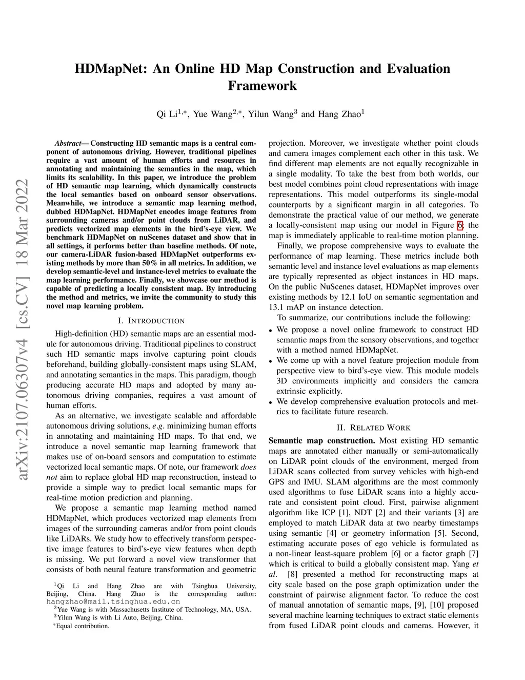 HDMapNet: An Online HD Map Construction and Evaluation Framework