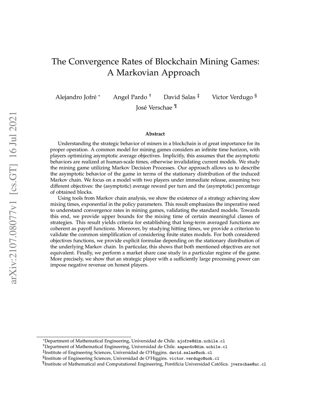 The Convergence Rates of Blockchain Mining Games: A Markovian Approach