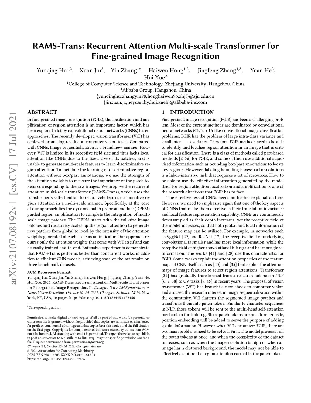 RAMS-Trans: Recurrent Attention Multi-scale Transformer forFine-grained