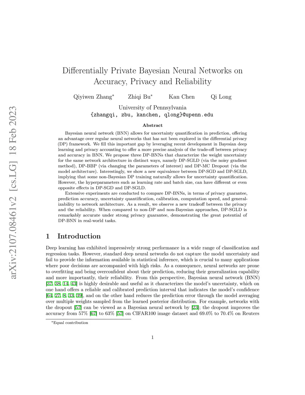 Bayesian neural network (BNN) allows for uncertainty quantification in prediction, offering an advantage over regular neural networks that has not been explored in the differential privacy (DP) framework. We fill this important gap by leveraging recent development in Bayesian deep learning and privacy accounting to offer a more precise analysis of the trade-off between privacy and accuracy in BNN. We propose three DP-BNNs that characterize the weight uncertainty for the same network architecture in distinct ways, namely DP-SGLD (via the noisy gradient method), DP-BBP (via changing the parameters of interest) and DP-MC Dropout (via the model architecture). Interestingly, we show a new equivalence between DP-SGD and DP-SGLD, implying that some non-Bayesian DP training naturally allows for uncertainty quantification. However, the hyperparameters such as learning rate and batch size, can have different or even opposite effects in DP-SGD and DP-SGLD. Extensive experiments are conducted to compare DP-BNNs, in terms of privacy guarantee, prediction accuracy, uncertainty quantification, calibration, computation speed, and generalizability to network architecture. As a result, we observe a new tradeoff between the privacy and the reliability. When compared to non-DP and non-Bayesian approaches, DP-SGLD is remarkably accurate under strong privacy guarantee, demonstrating the great potential of DP-BNN in real-world tasks.
