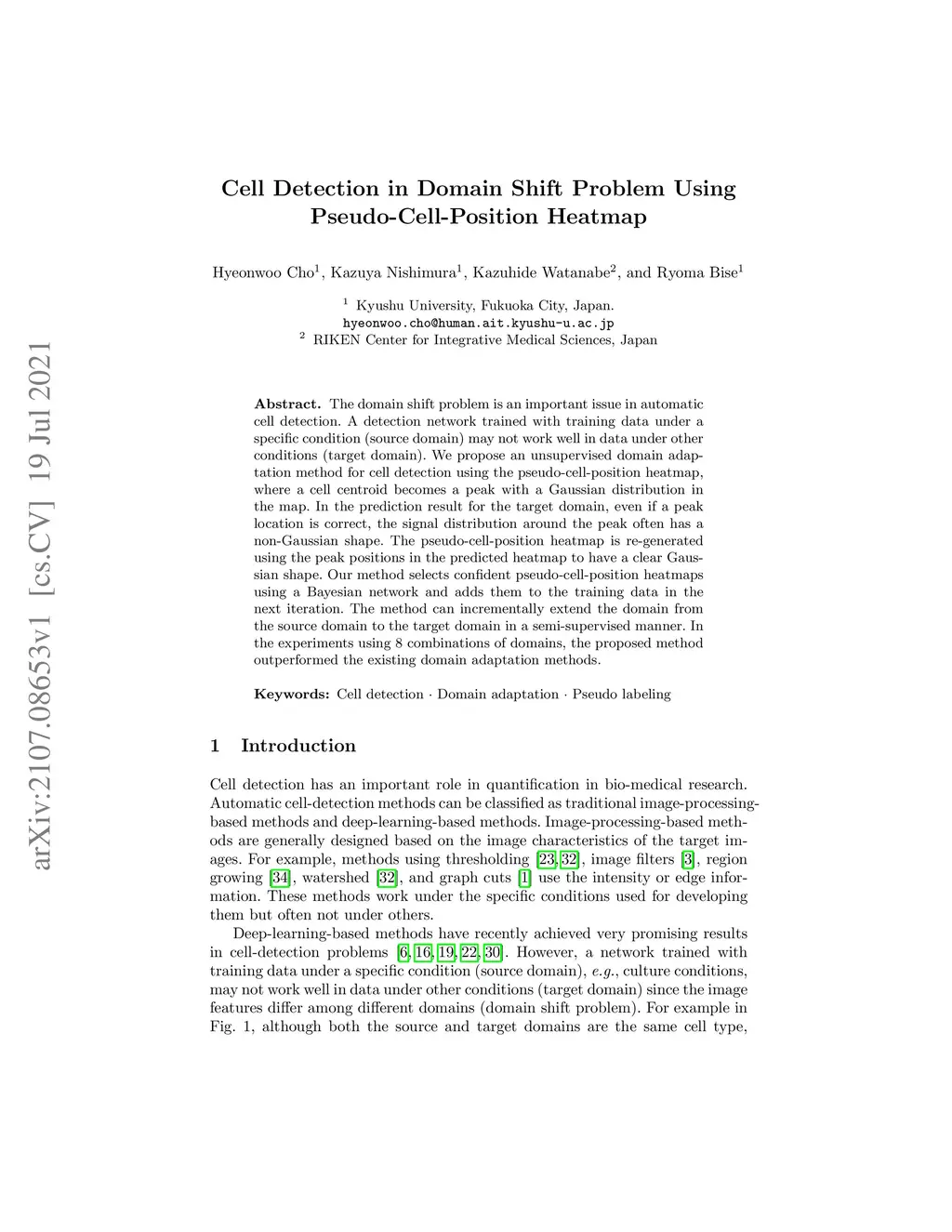 Cell Detection in Domain Shift Problem Using Pseudo-Cell-Position