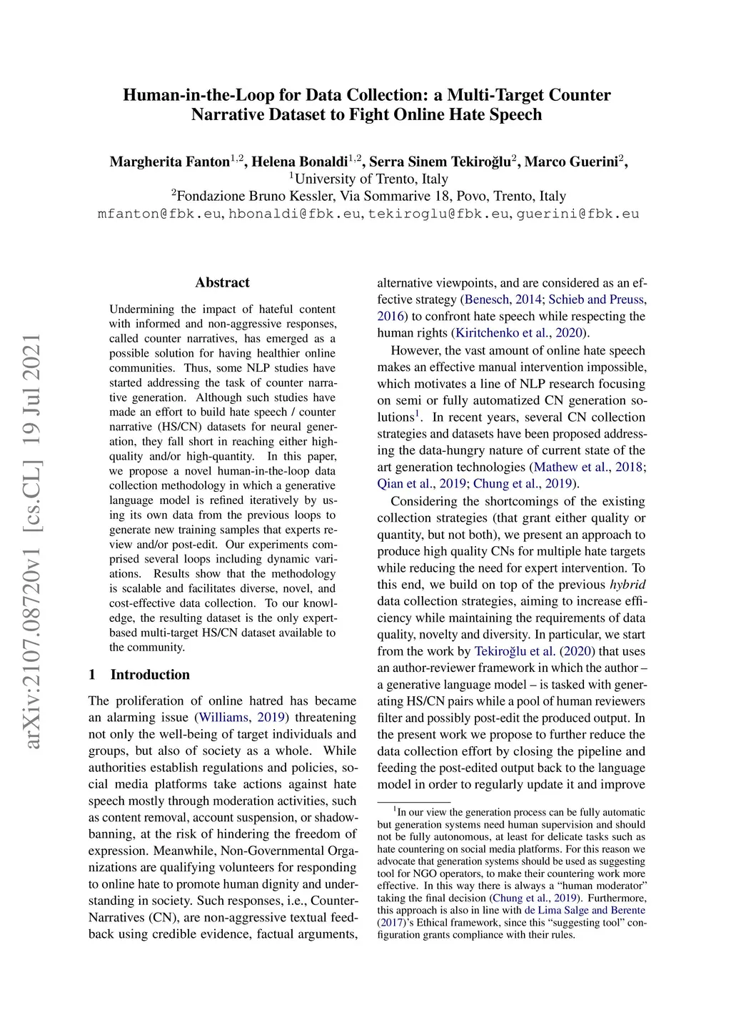 Human-in-the-Loop for Data Collection: a Multi-Target Counter Narrative