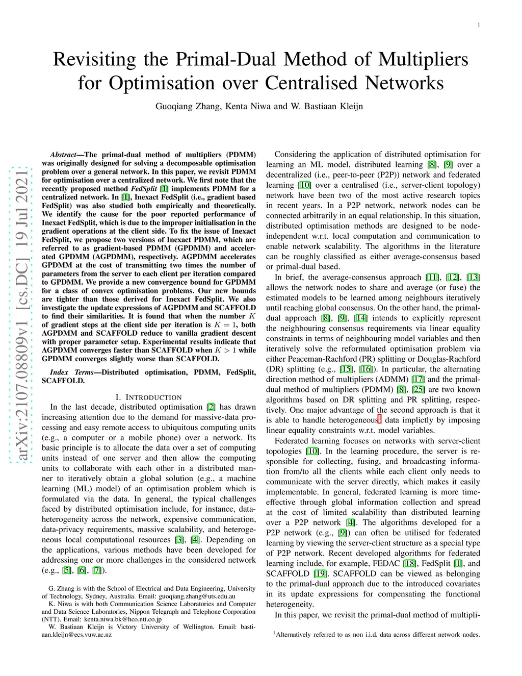 The primal-dual method of multipliers (PDMM) was originally designed for solving a decomposable optimisation problem over a general network. In this paper, we revisit PDMM for optimisation over a centralized network. We first note that the recently proposed method FedSplit [1] implements PDMM for a centralized network. In [1], Inexact FedSplit (i.e., gradient based FedSplit) was also studied both empirically and theoretically. We identify the cause for the poor reported performance of Inexact FedSplit, which is due to the improper initialisation in the gradient operations at the client side. To fix the issue of Inexact FedSplit, we propose two versions of Inexact PDMM, which are referred to as gradient-based PDMM (GPDMM) and accelerated GPDMM (AGPDMM), respectively. AGPDMM accelerates GPDMM at the cost of transmitting two times the number of parameters from the server to each client per iteration compared to GPDMM. We provide a new convergence bound for GPDMM for a class of convex optimisation problems. Our new bounds are tighter than those derived for Inexact FedSplit. We also investigate the update expressions of AGPDMM and SCAFFOLD to find their similarities. It is found that when the number K of gradient steps at the client side per iteration is K=1, both AGPDMM and SCAFFOLD reduce to vanilla gradient descent with proper parameter setup. Experimental results indicate that AGPDMM converges faster than SCAFFOLD when K>1 while GPDMM converges slightly worse than SCAFFOLD.