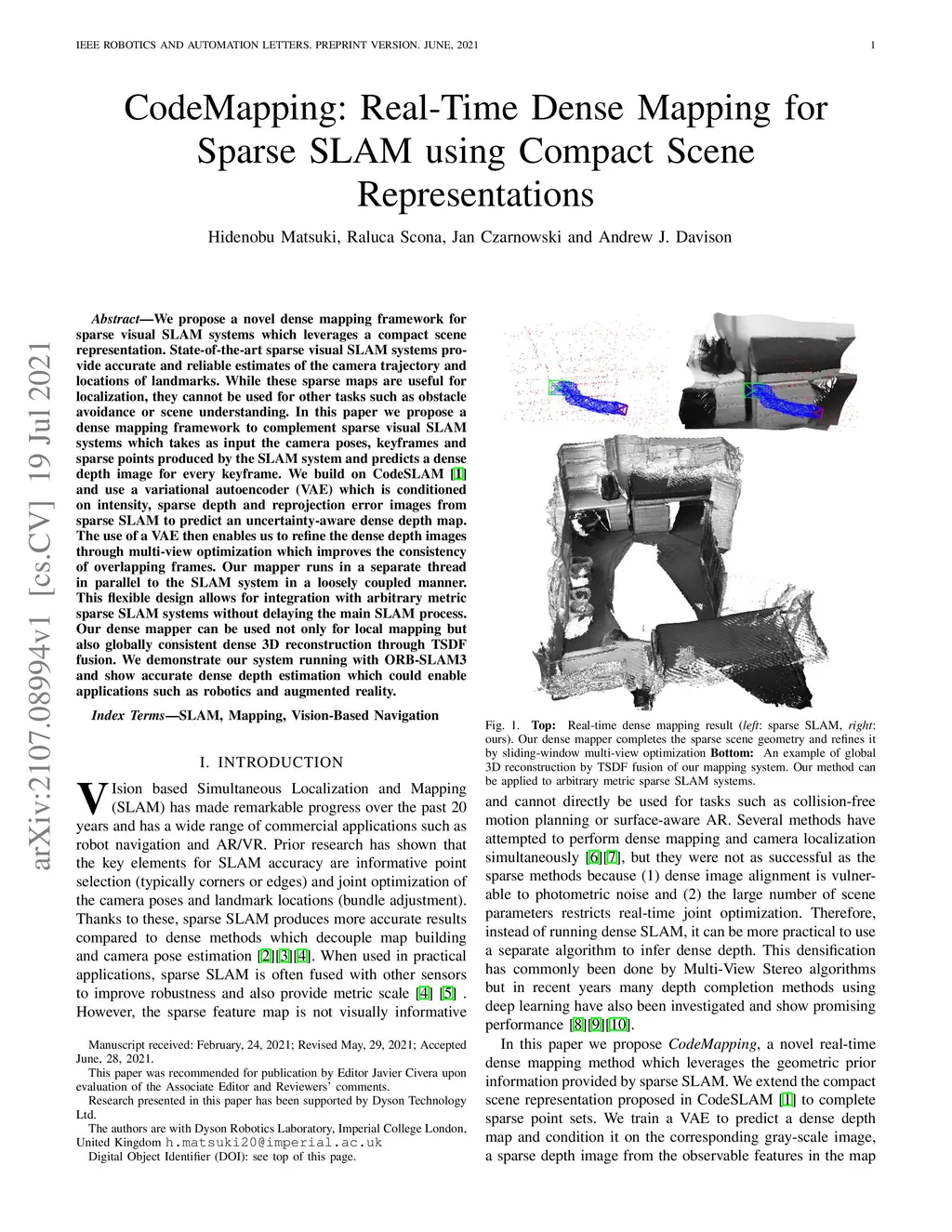 CodeMapping: Real-Time Dense Mapping for Sparse SLAM using Compact Scene