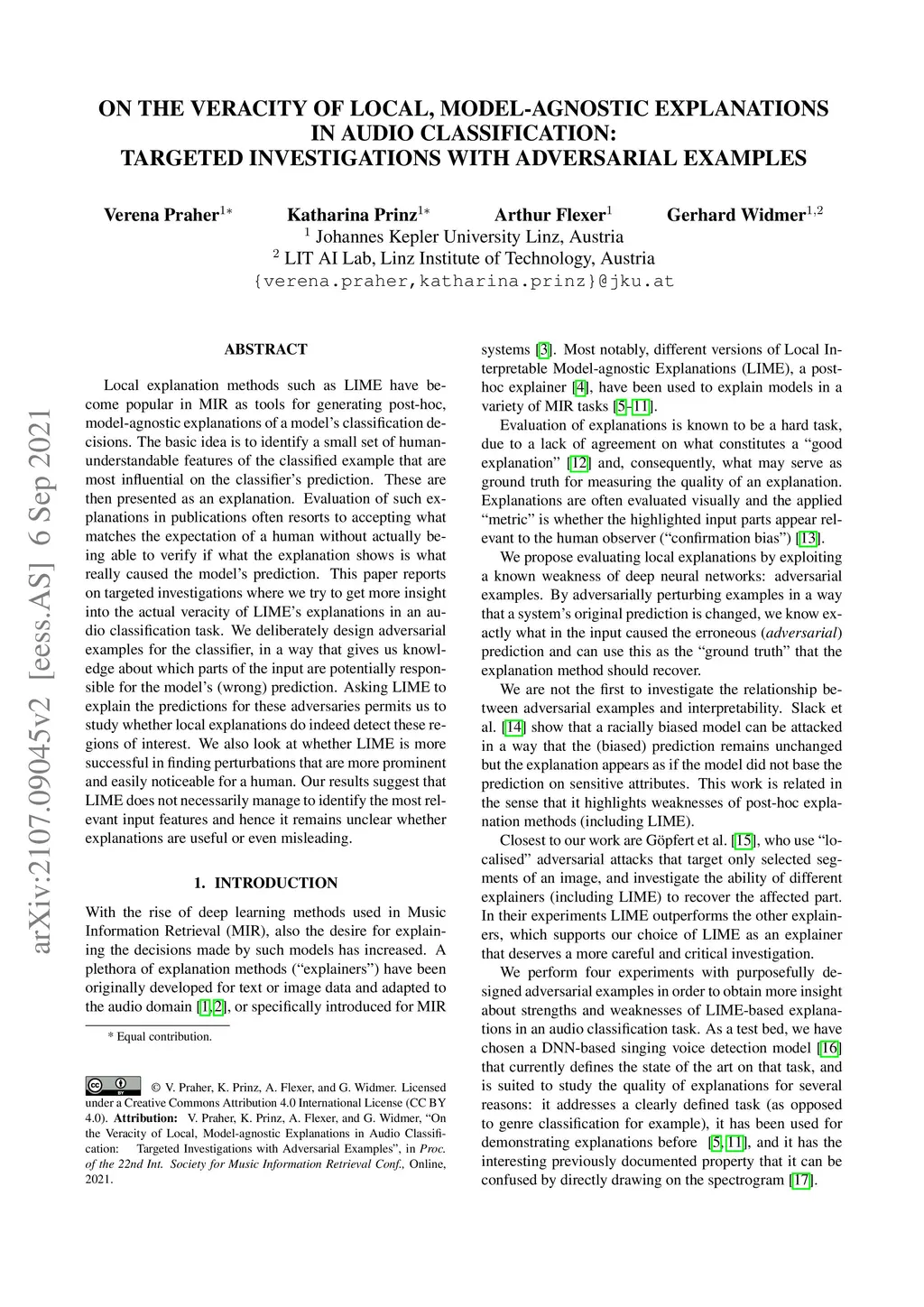 Local explanation methods such as LIME have become popular in MIR as tools for generating post-hoc, model-agnostic explanations of a model's classification decisions. The basic idea is to identify a small set of human-understandable features of the classified example that are most influential on the classifier's prediction. These are then presented as an explanation. Evaluation of such explanations in publications often resorts to accepting what matches the expectation of a human without actually being able to verify if what the explanation shows is what really caused the model's prediction. This paper reports on targeted investigations where we try to get more insight into the actual veracity of LIME's explanations in an audio classification task. We deliberately design adversarial examples for the classifier, in a way that gives us knowledge about which parts of the input are potentially responsible for the model's (wrong) prediction. Asking LIME to explain the predictions for these adversaries permits us to study whether local explanations do indeed detect these regions of interest. We also look at whether LIME is more successful in finding perturbations that are more prominent and easily noticeable for a human. Our results suggest that LIME does not necessarily manage to identify the most relevant input features and hence it remains unclear whether explanations are useful or even misleading.