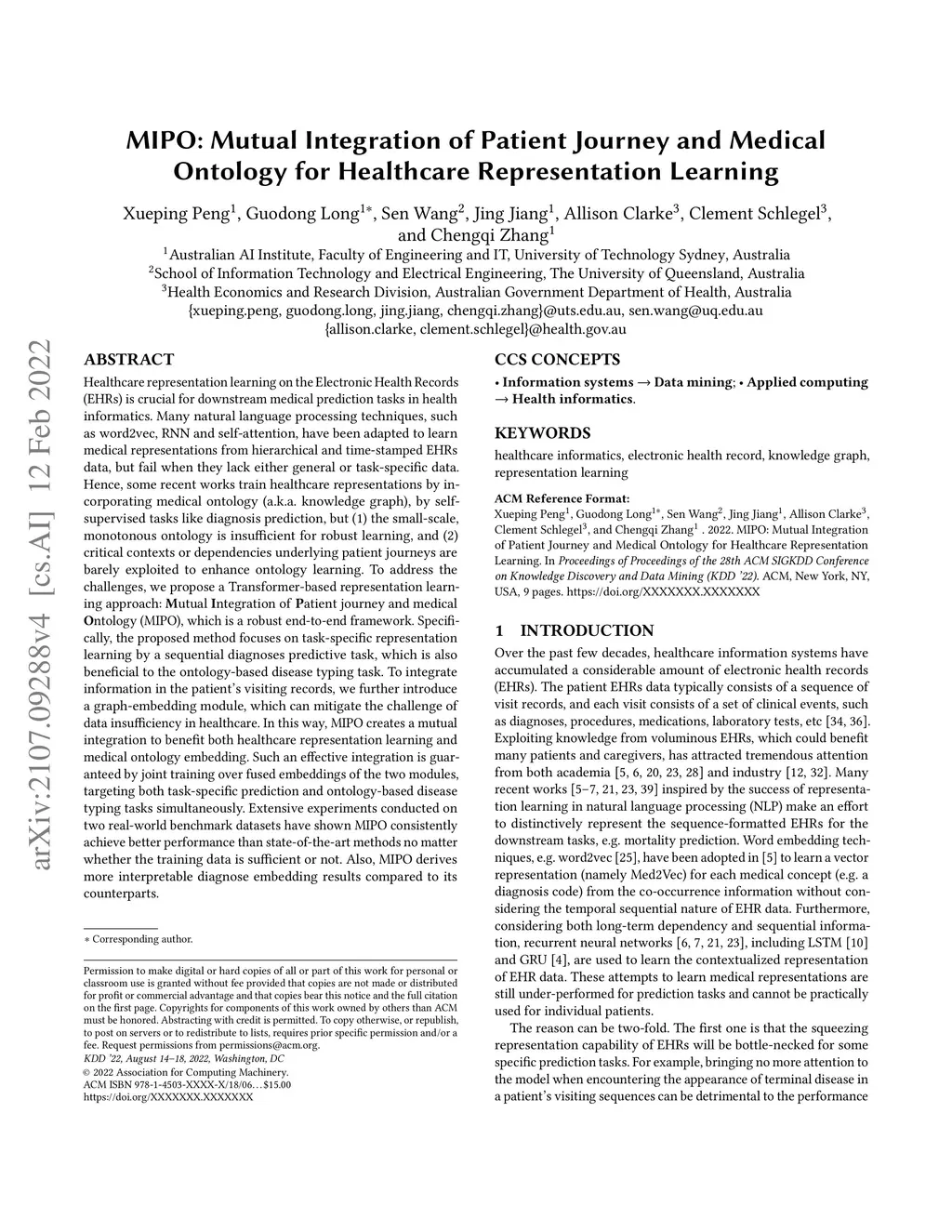 MIPO: Mutual Integration of Patient Journey and Medical Ontology for Healthcare Representation Learning