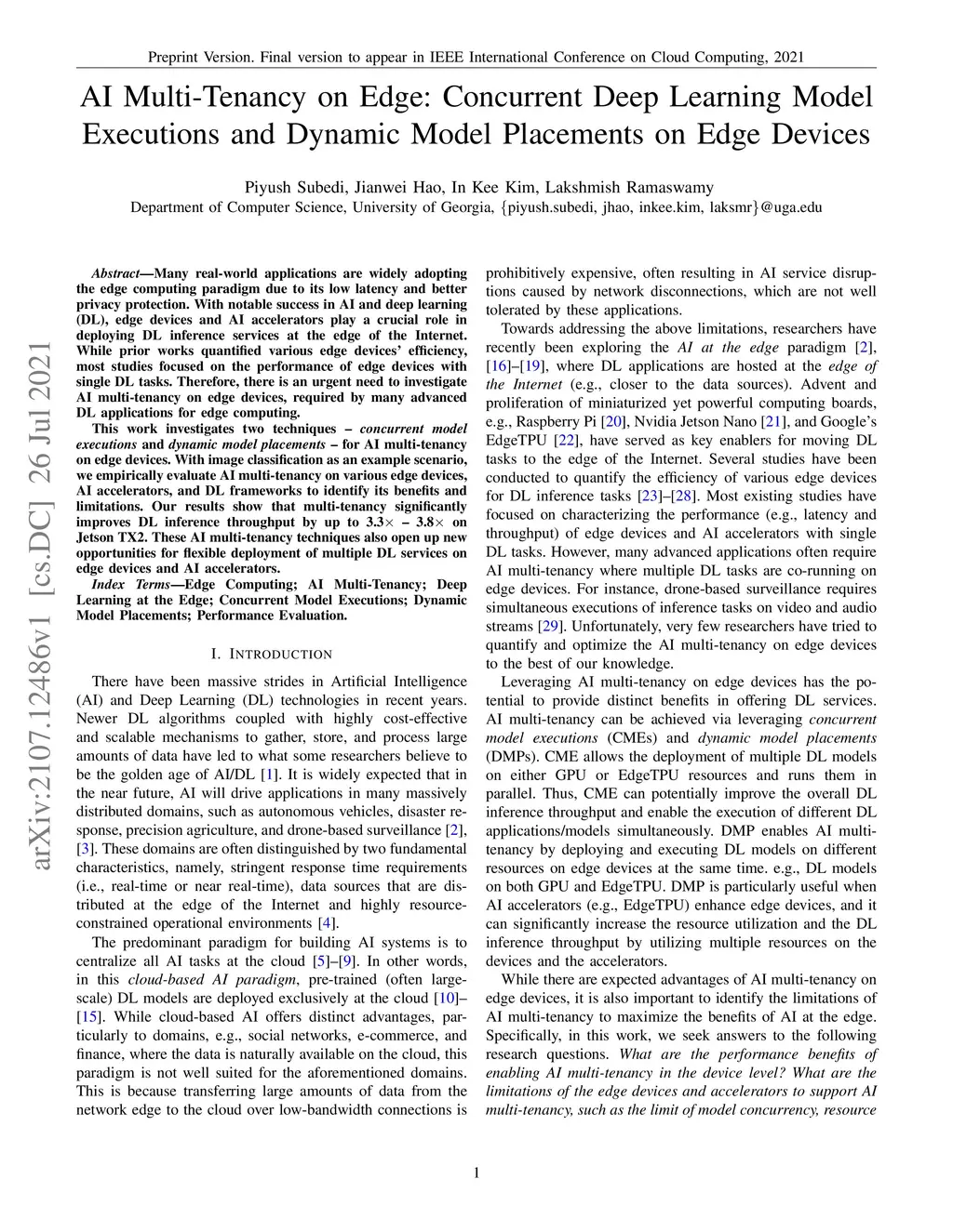 AI Multi-Tenancy on Edge: Concurrent Deep Learning Model Executions and