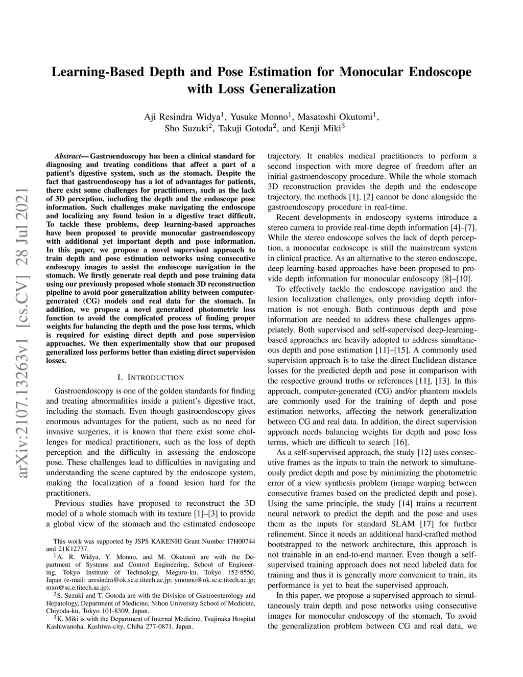 Learning-Based Depth and Pose Estimation for Monocular Endoscope with