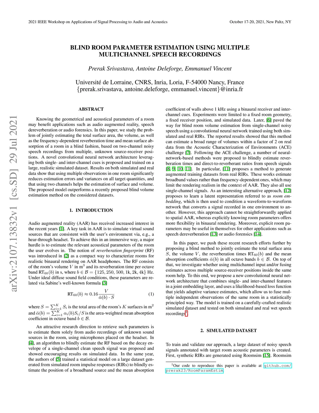 Blind Room Parameter Estimation Using Multiple-Multichannel Speech