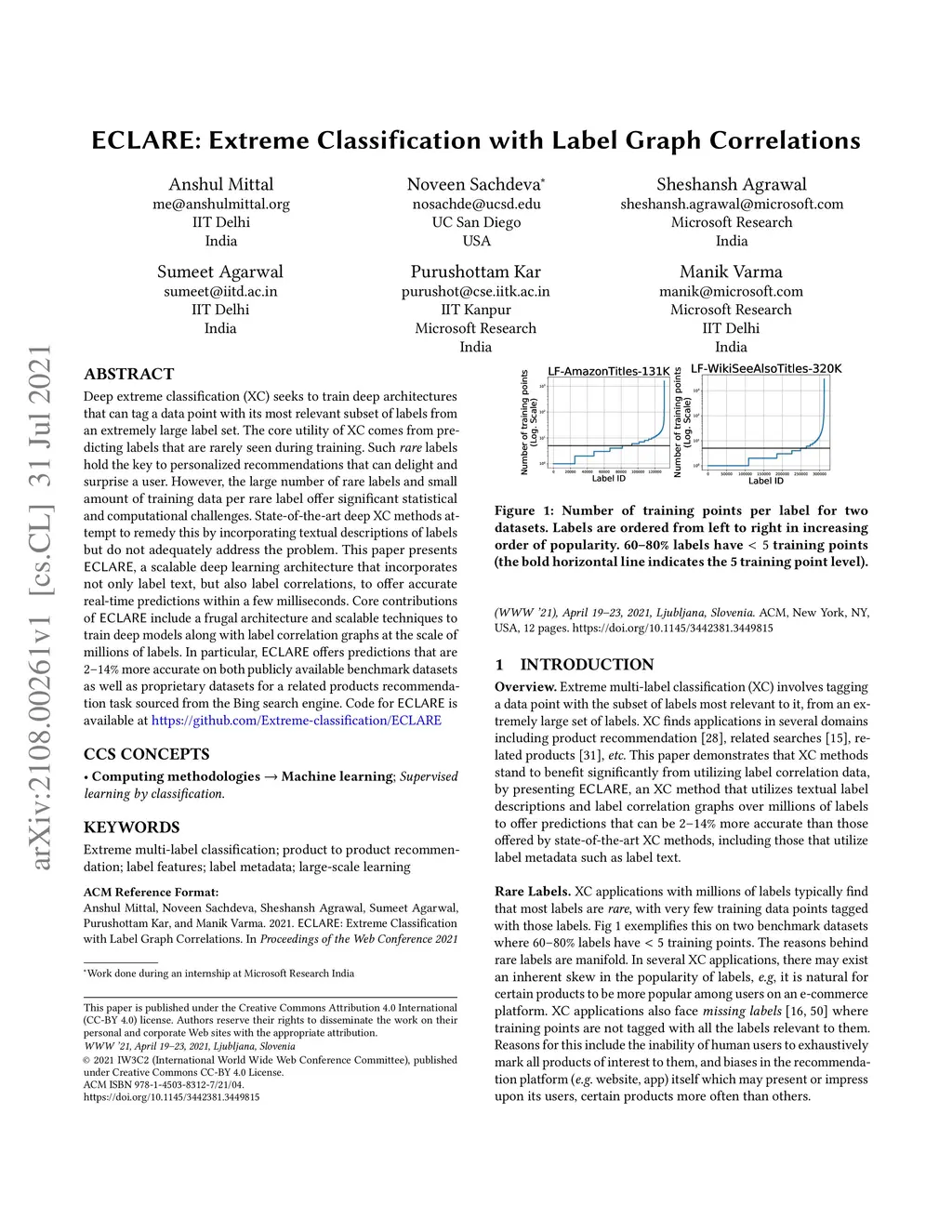 ECLARE: Extreme Classification with Label Graph Correlations