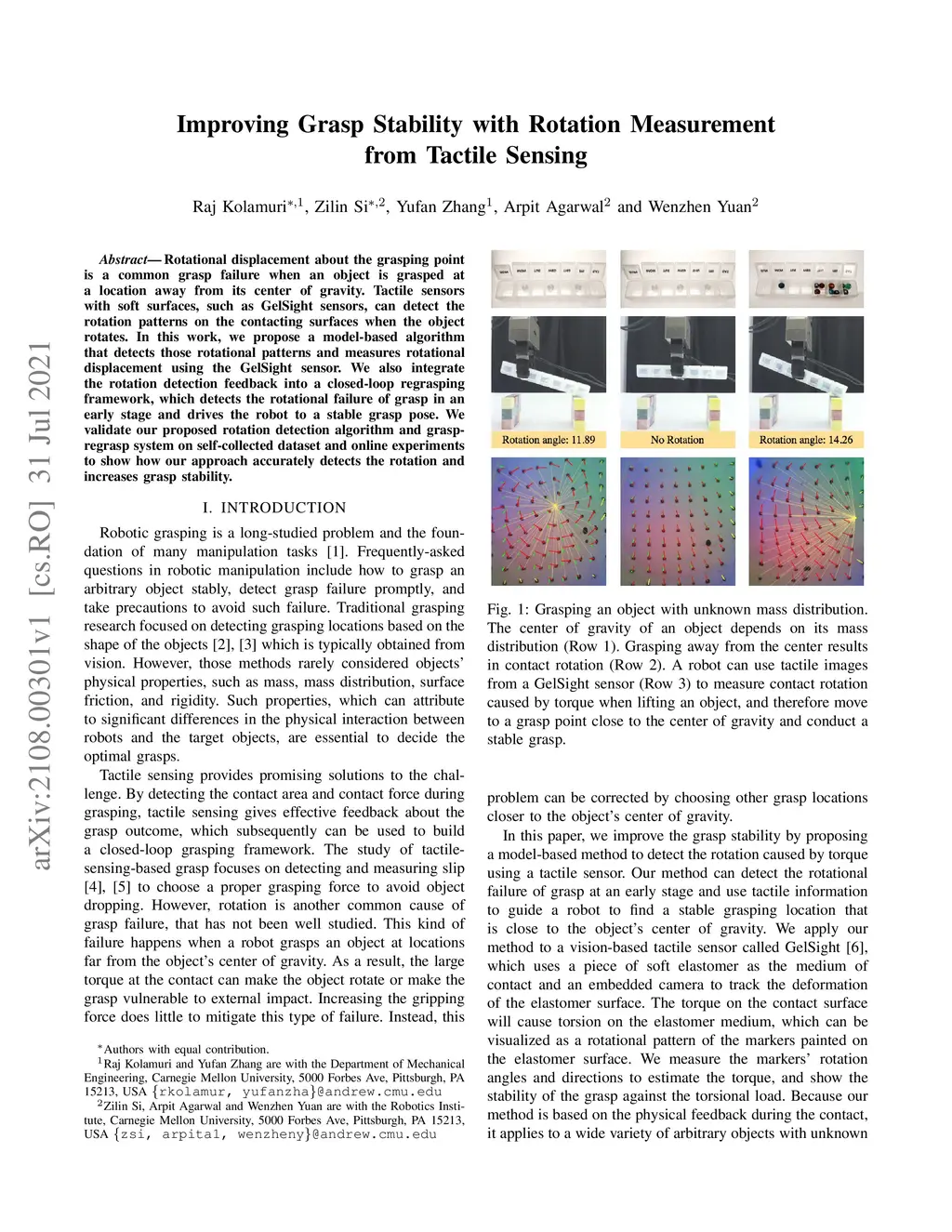 Improving Grasp Stability with Rotation Measurement from Tactile Sensing