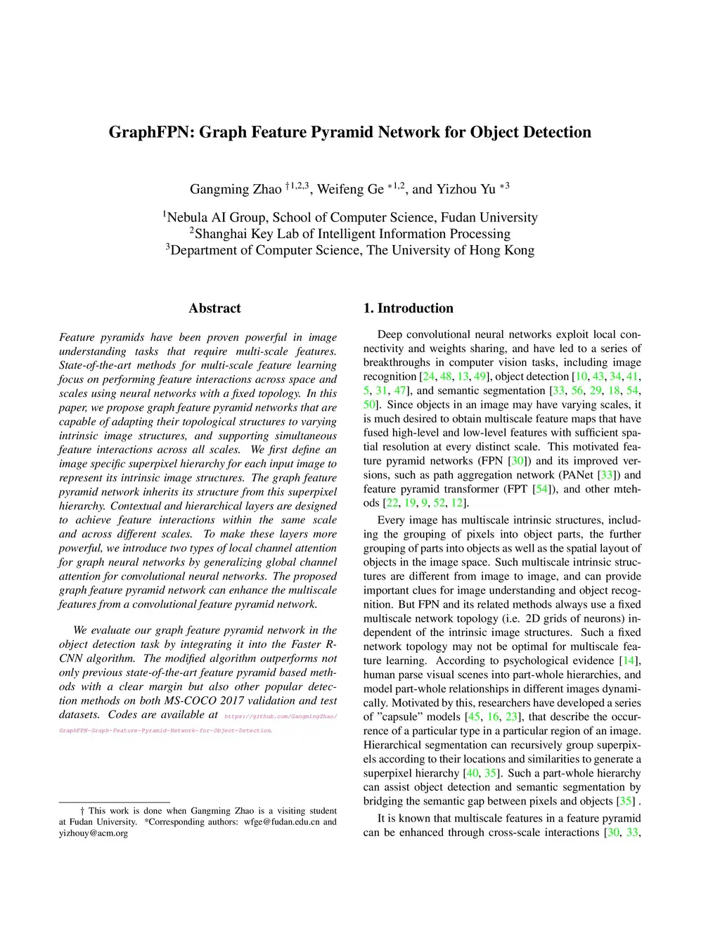 GraphFPN: Graph Feature Pyramid Network for Object Detection