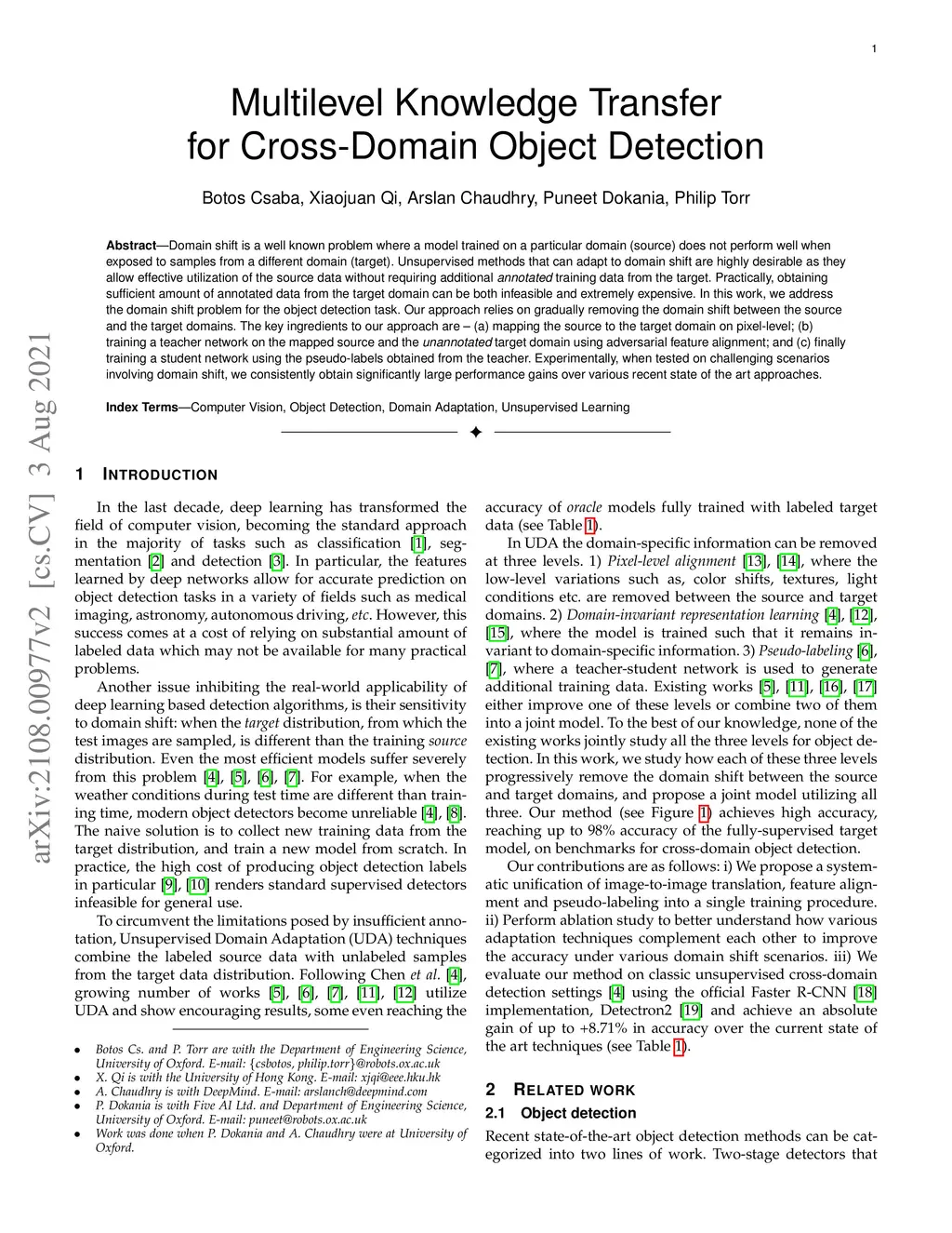 Multilevel Knowledge Transfer for Cross-Domain Object Detection
