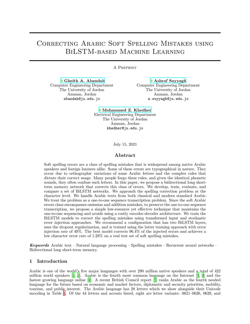 Correcting Arabic Soft Spelling Mistakes using BiLSTM-based Machine