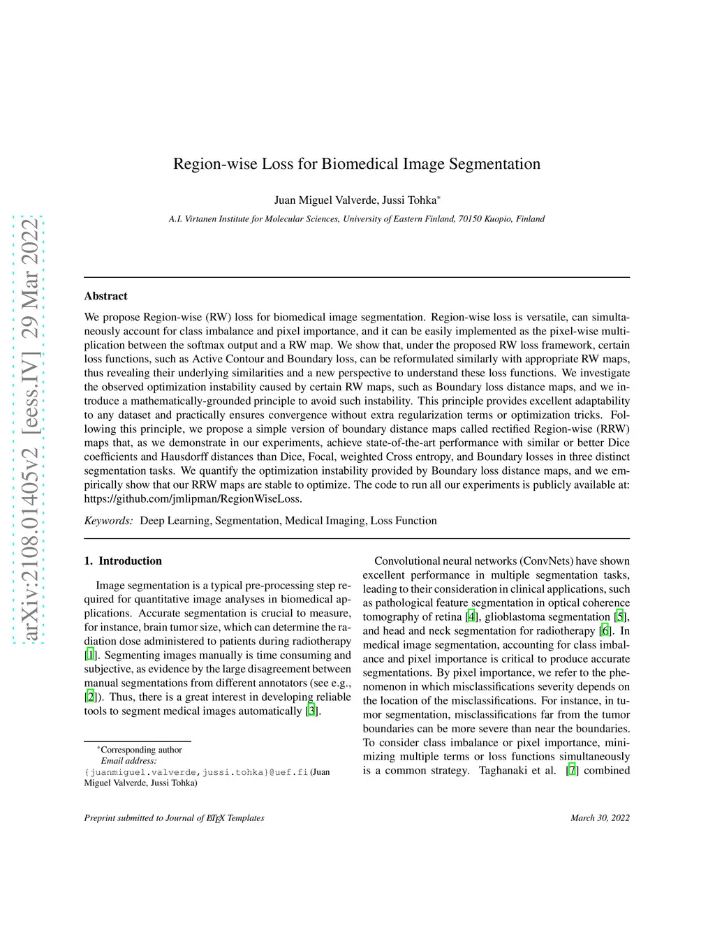 We propose Region-wise (RW) loss for biomedical image segmentation. Region-wise loss is versatile, can simultaneously account for class imbalance and pixel importance, and it can be easily implemented as the pixel-wise multiplication between the softmax output and a RW map. We show that, under the proposed RW loss framework, certain loss functions, such as Active Contour and Boundary loss, can be reformulated similarly with appropriate RW maps, thus revealing their underlying similarities and a new perspective to understand these loss functions. We investigate the observed optimization instability caused by certain RW maps, such as Boundary loss distance maps, and we introduce a mathematically-grounded principle to avoid such instability. This principle provides excellent adaptability to any dataset and practically ensures convergence without extra regularization terms or optimization tricks. Following this principle, we propose a simple version of boundary distance maps called rectified Region-wise (RRW) maps that, as we demonstrate in our experiments, achieve state-of-the-art performance with similar or better Dice coefficients and Hausdorff distances than Dice, Focal, weighted Cross entropy, and Boundary losses in three distinct segmentation tasks. We quantify the optimization instability provided by Boundary loss distance maps, and we empirically show that our RRW maps are stable to optimize. The code to run all our experiments is publicly available at: https://github.com/jmlipman/RegionWiseLoss.