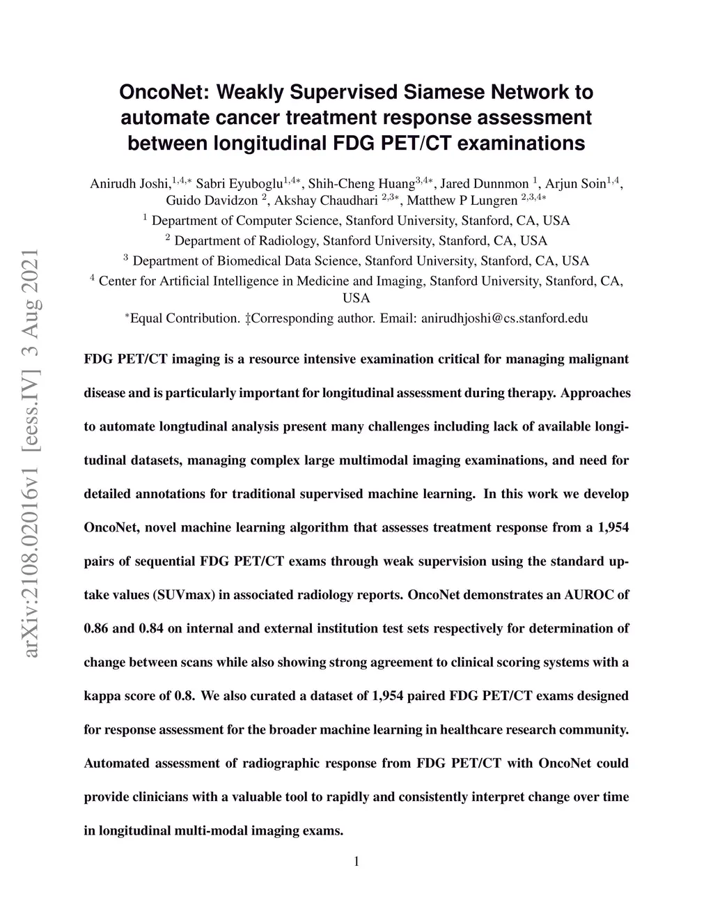 OncoNet: Weakly Supervised Siamese Network to automate cancer treatment