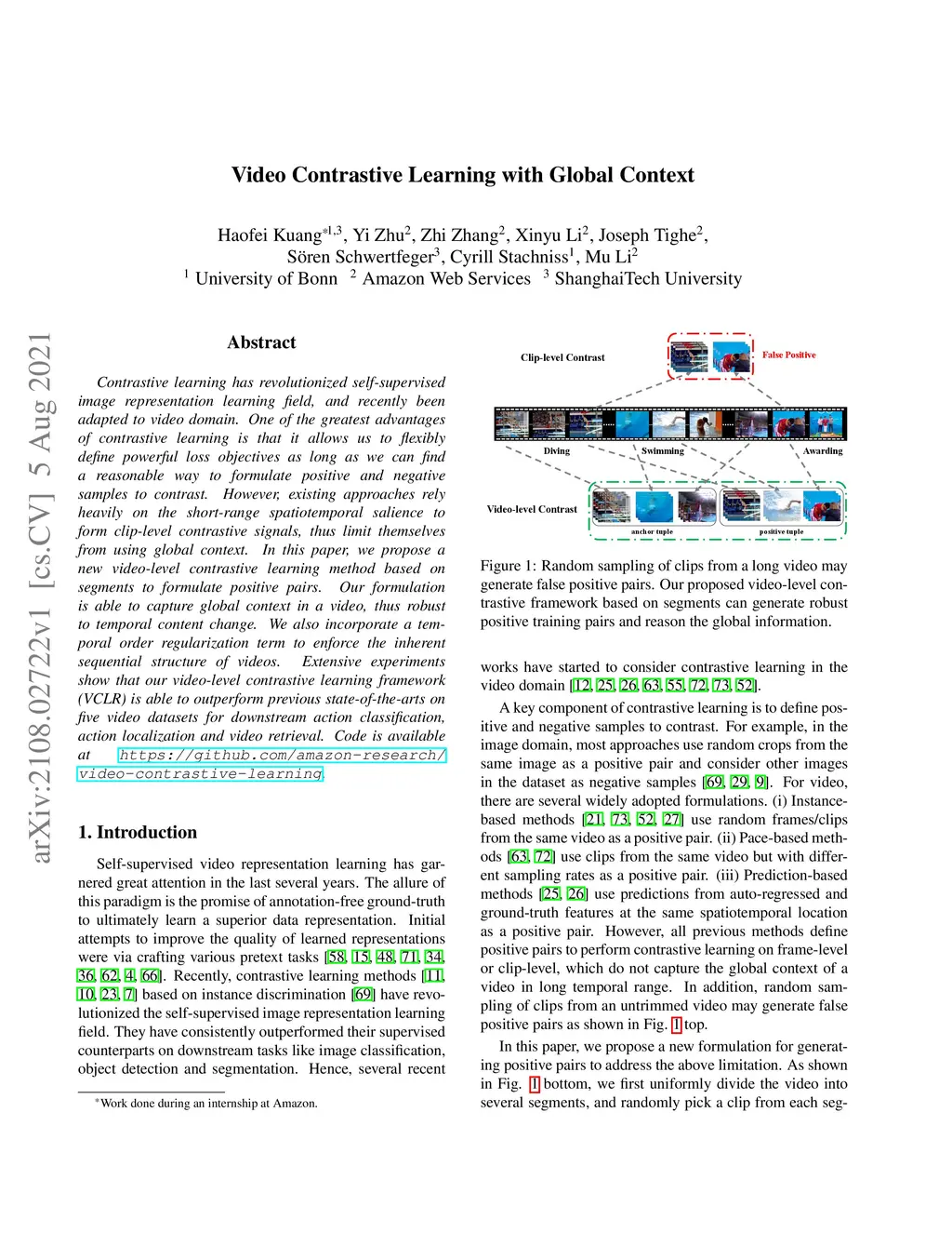 Video Contrastive Learning with Global Context