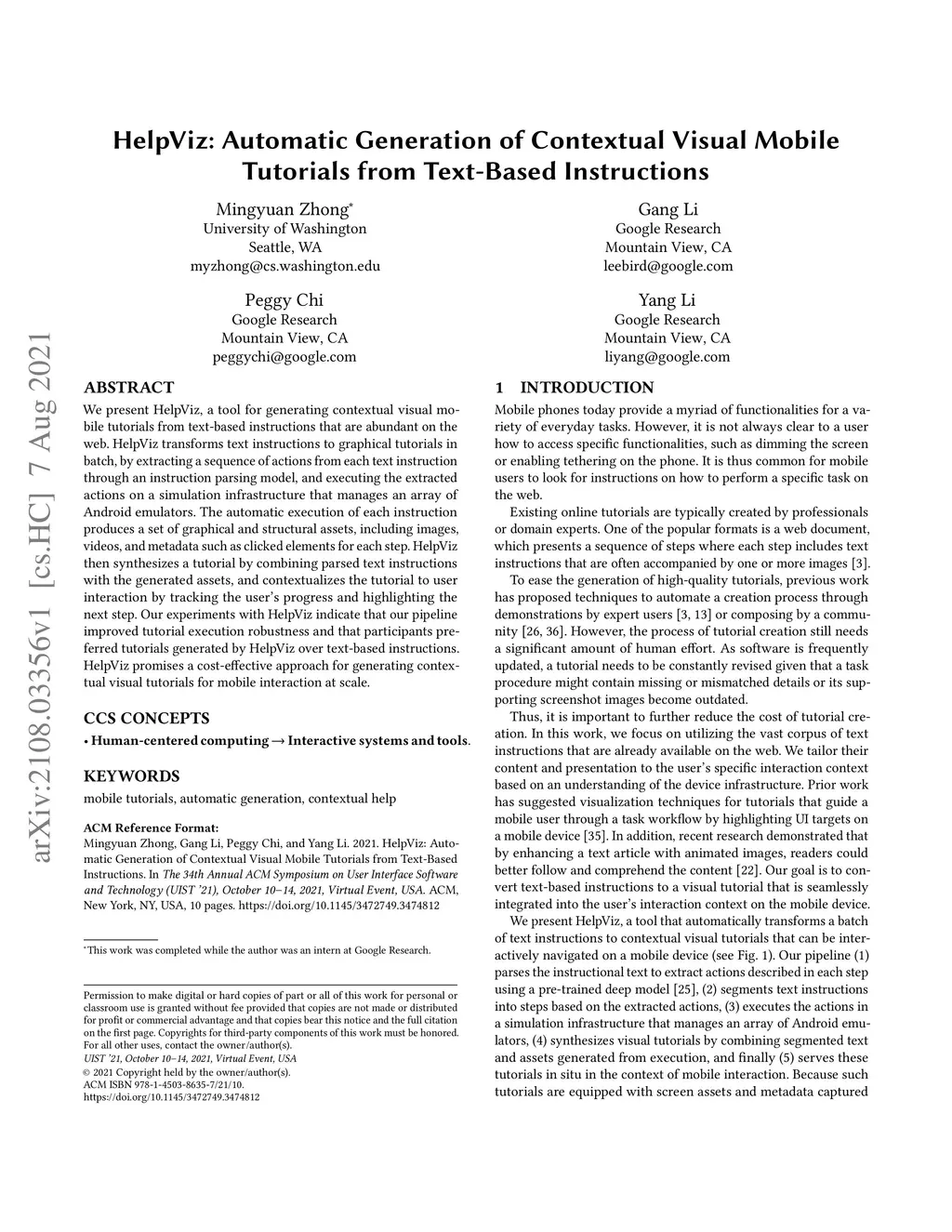 HelpViz: Automatic Generation of Contextual Visual MobileTutorials from
