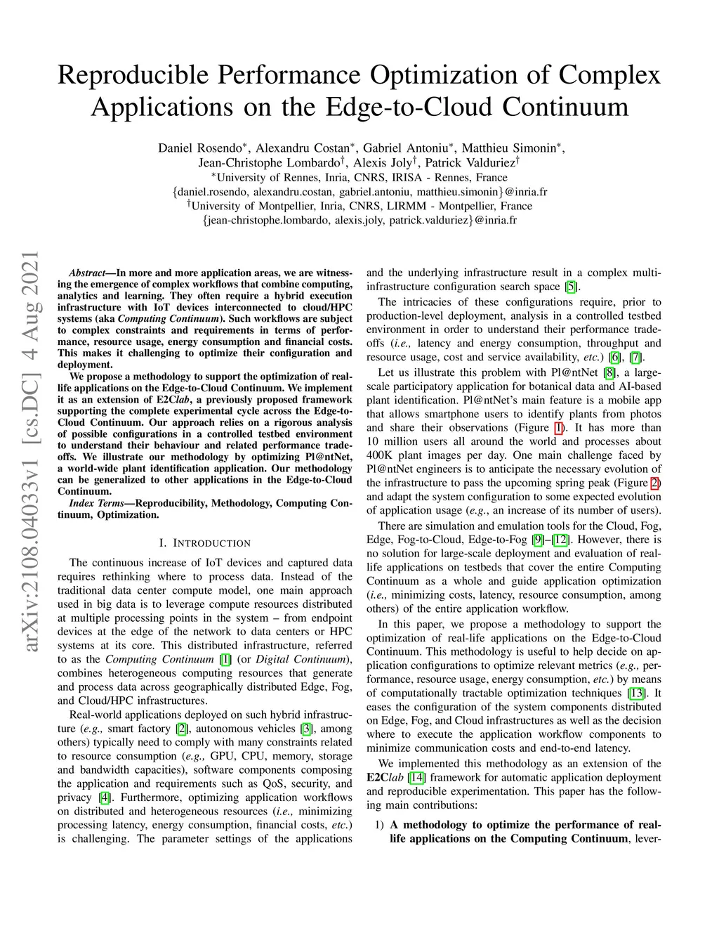 In more and more application areas, we are witnessing the emergence of complex workflows that combine computing, analytics and learning. They often require a hybrid execution infrastructure with IoT devices interconnected to cloud/HPC systems (aka Computing Continuum). Such workflows are subject to complex constraints and requirements in terms of performance, resource usage, energy consumption and financial costs. This makes it challenging to optimize their configuration and deployment. We propose a methodology to support the optimization of real-life applications on the Edge-to-Cloud Continuum. We implement it as an extension of E2Clab, a previously proposed framework supporting the complete experimental cycle across the Edge-to-Cloud Continuum. Our approach relies on a rigorous analysis of possible configurations in a controlled testbed environment to understand their behaviour and related performance trade-offs. We illustrate our methodology by optimizing Pl@ntNet, a world-wide plant identification application. Our methodology can be generalized to other applications in the Edge-to-Cloud Continuum.