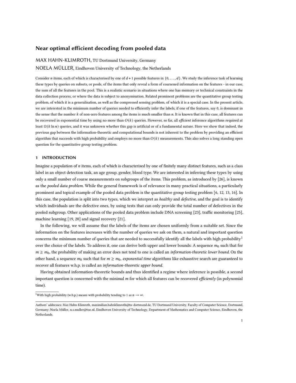 Consider items, each of which is characterised by one of possible features in . We study the inference task of learning these types by queries on subsets, or pools, of the items that only reveal a form of coarsened information on the features - in our case, the sum of all the features in the pool. This is a realistic scenario in situations where one has memory or technical constraints in the data collection process, or where the data is subject to anonymisation. Related prominent problems are the quantitative group testing problem, of which it is a generalisation, as well as the compressed sensing problem, of which it is a special case. In the present article, we are interested in the minimum number of queries needed to efficiently infer the labels, if one of the features, say , is dominant in the sense that the number of non-zero features among the items is much smaller than . It is known that in this case, all features can be recovered in exponential time by using no more than queries. However, so far, all \textit{efficient} inference algorithms required at least queries, and it was unknown whether this gap is artificial or of a fundamental nature. Here we show that indeed, the previous gap between the information-theoretic and computational bounds is not inherent to the problem by providing an efficient algorithm that succeeds with high probability and employs no more than measurements. This also solves a long standing open question for the quantitative group testing problem.