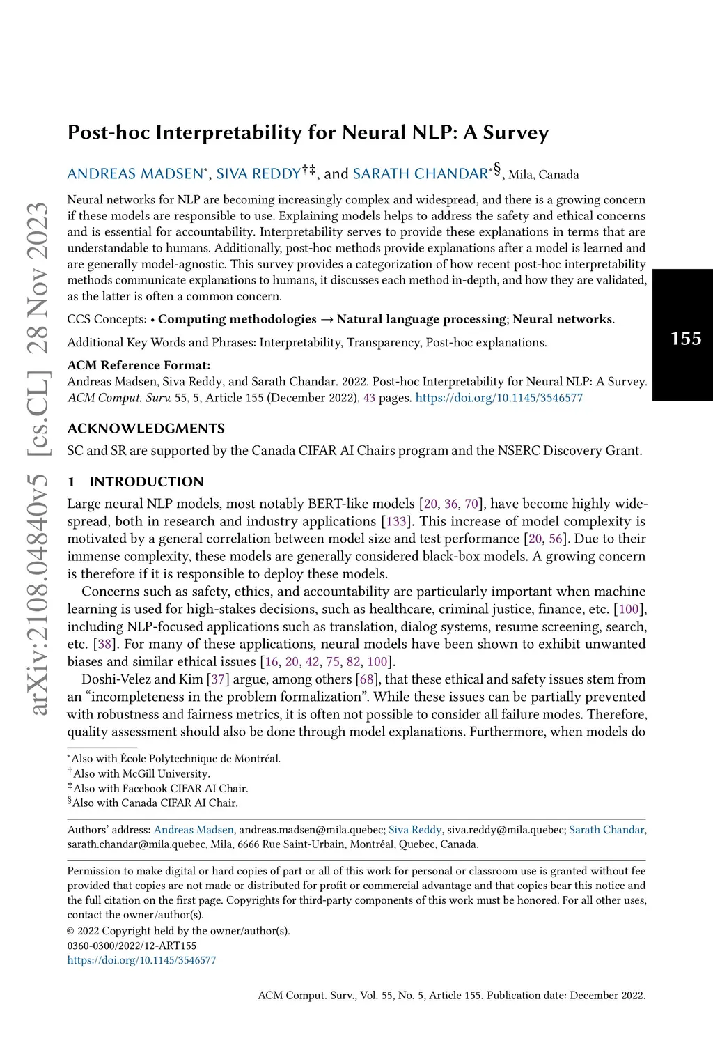 Neural networks for NLP are becoming increasingly complex and widespread, and there is a growing concern if these models are responsible to use. Explaining models helps to address the safety and ethical concerns and is essential for accountability. Interpretability serves to provide these explanations in terms that are understandable to humans. Additionally, post-hoc methods provide explanations after a model is learned and are generally model-agnostic. This survey provides a categorization of how recent post-hoc interpretability methods communicate explanations to humans, it discusses each method in-depth, and how they are validated, as the latter is often a common concern.