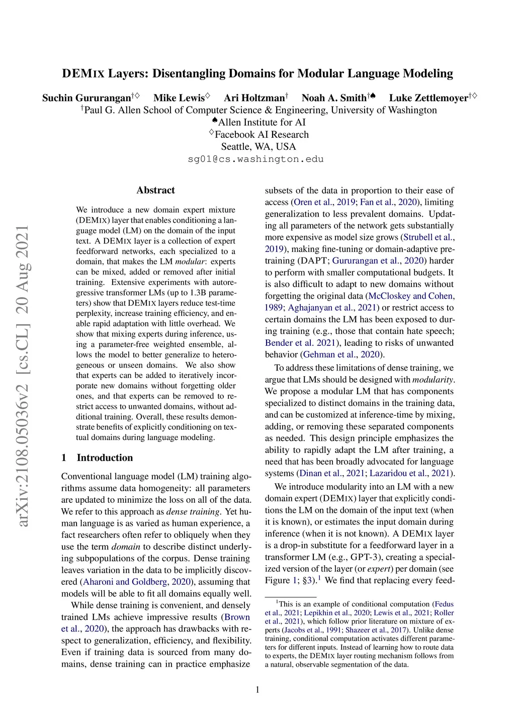 DEMix Layers: Disentangling Domains for Modular Language Modeling