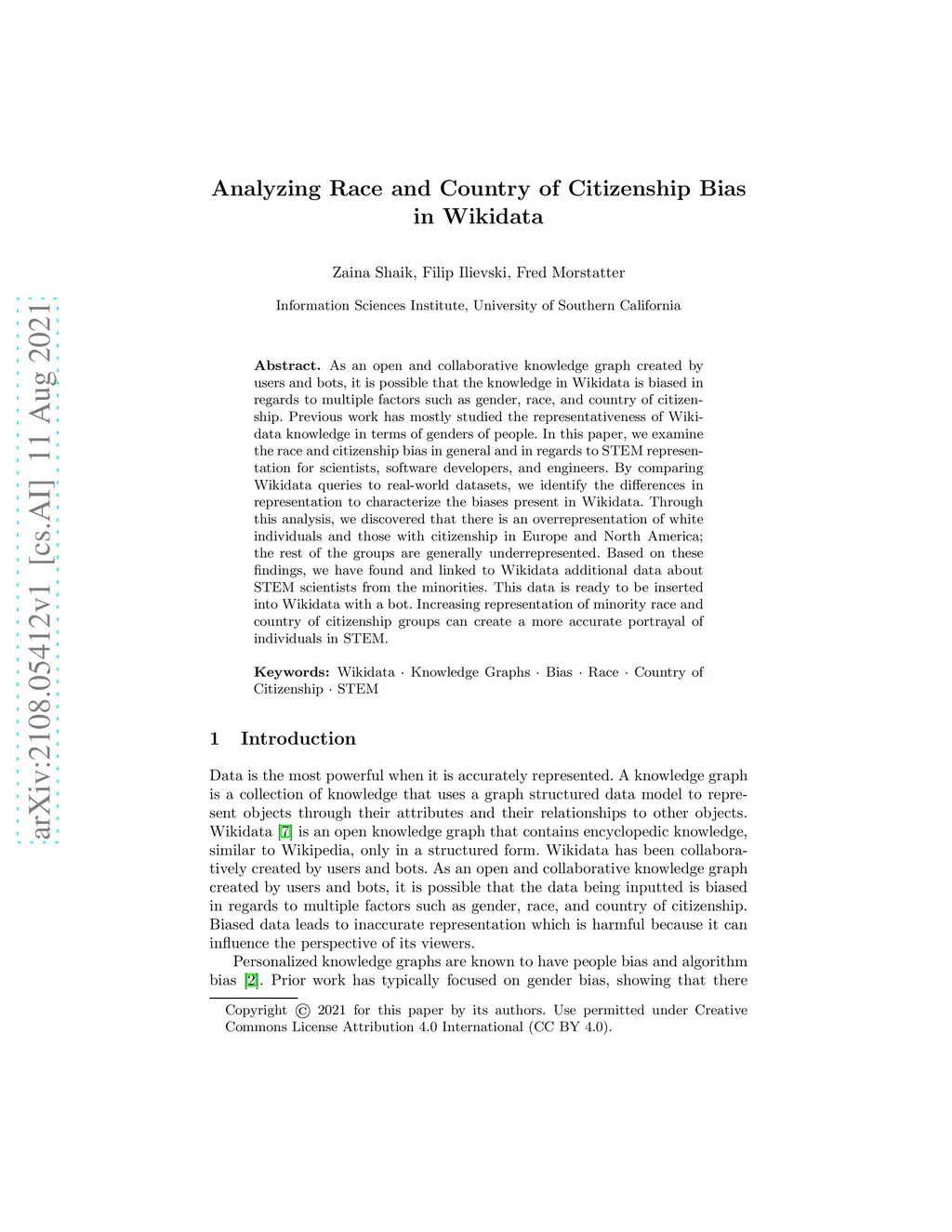 Analyzing Race and Country of Citizenship Bias in Wikidata